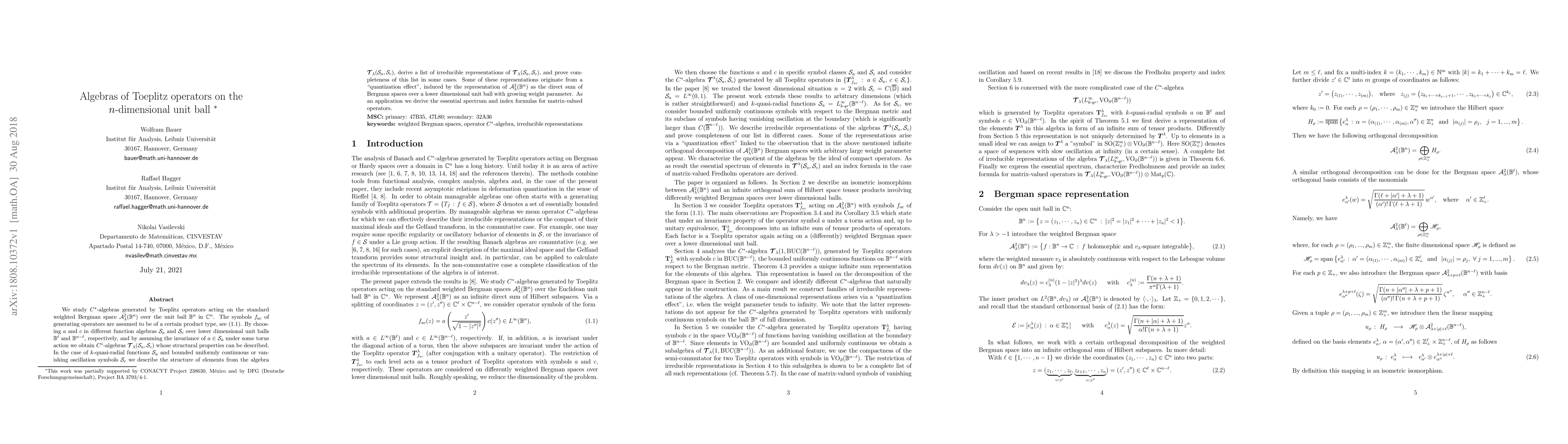 This paper examines $C^*$-algebras generated by Toeplitz operators on the standard weighted Bergman space over the $n$-dimensional unit ball, focusing on structural properties when symbols are of a specific product type. It derives irreducible representations and completeness for certain function algebras, revealing 'quantization effects' and deriving essential spectrum and index formulas for matrix-valued operators.