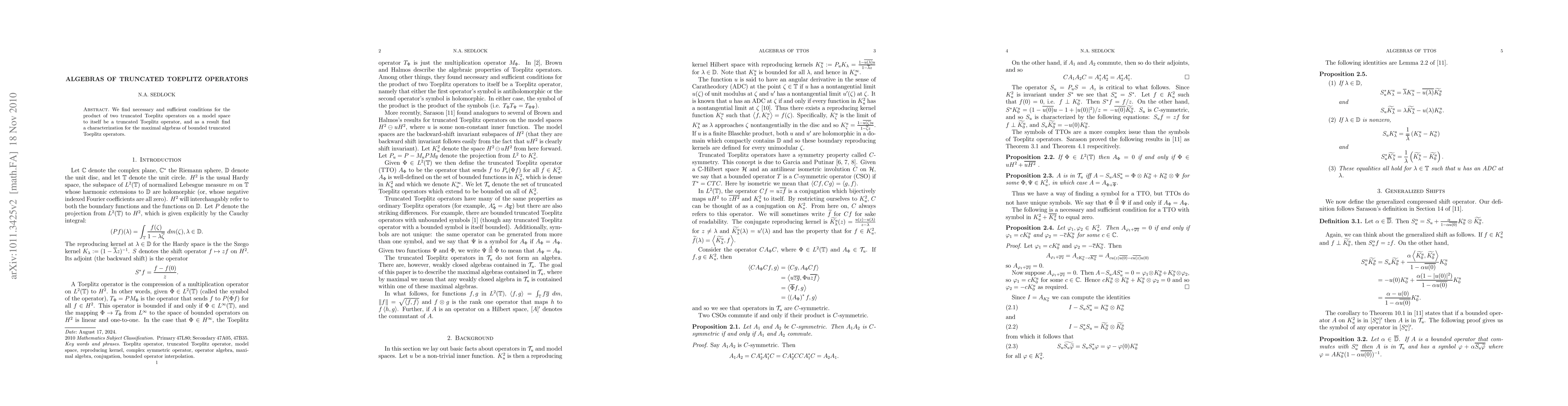 The research employs operator theory and functional analysis techniques, focusing on truncated Toeplitz operators and their algebraic properties.