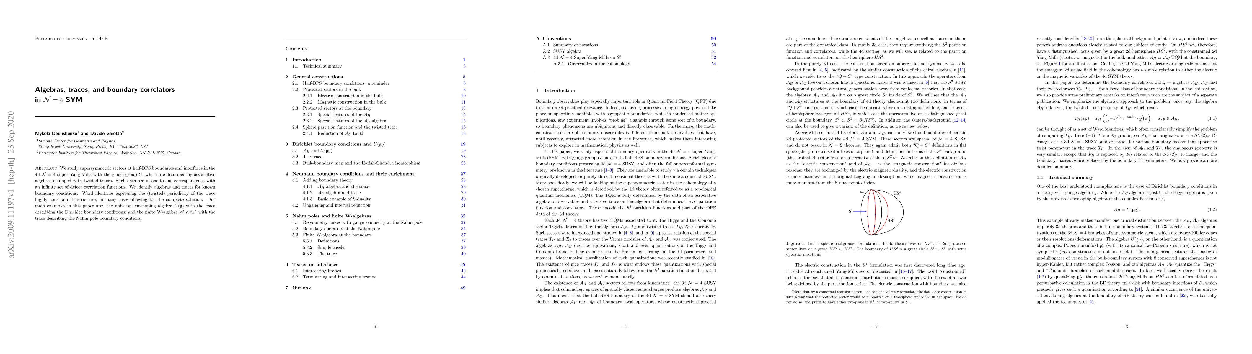 We study supersymmetric sectors at half-BPS boundaries and interfaces in the 4d $\mathcal{N}=4$ super Yang-Mills with the gauge group $G$, which are described by associative algebras equipped with twisted traces. Such data are in one-to-one correspondence with an infinite set of defect correlation functions. We identify algebras and traces for known boundary conditions. Ward identities expressing the (twisted) periodicity of the trace highly constrain its structure, in many cases allowing for the complete solution. Our main examples in this paper are: the universal enveloping algebra $U(\mathfrak{g})$ with the trace describing the Dirichlet boundary conditions; and the finite W-algebra $\mathcal{W}(\mathfrak{g},t_+)$ with the trace describing the Nahm pole boundary conditions.