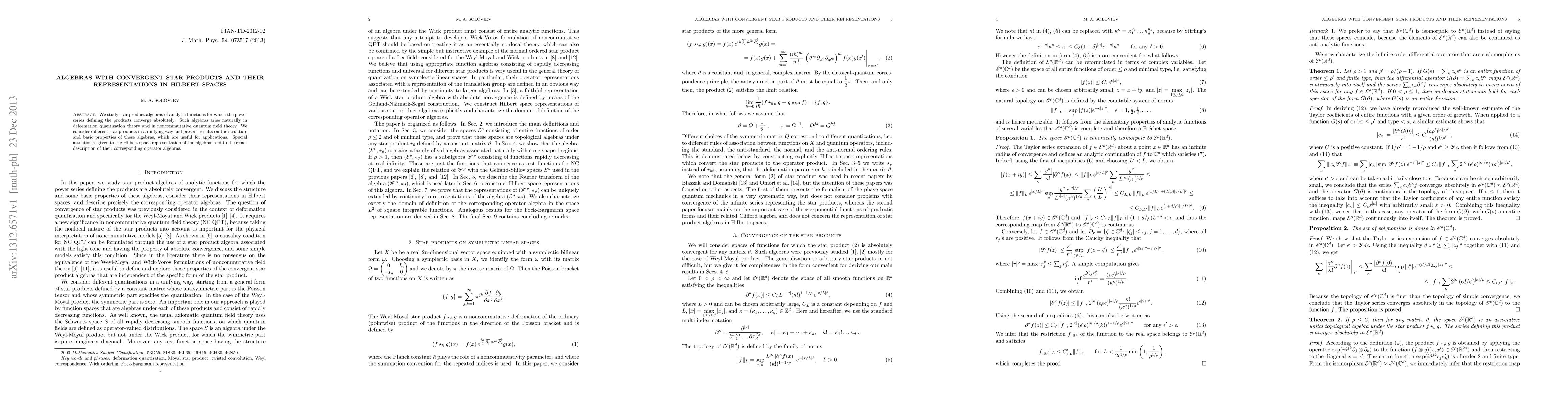 This paper explores star product algebras of analytic functions with convergent power series, focusing on their structure and Hilbert space representations for applications in deformation quantization and quantum field theory.