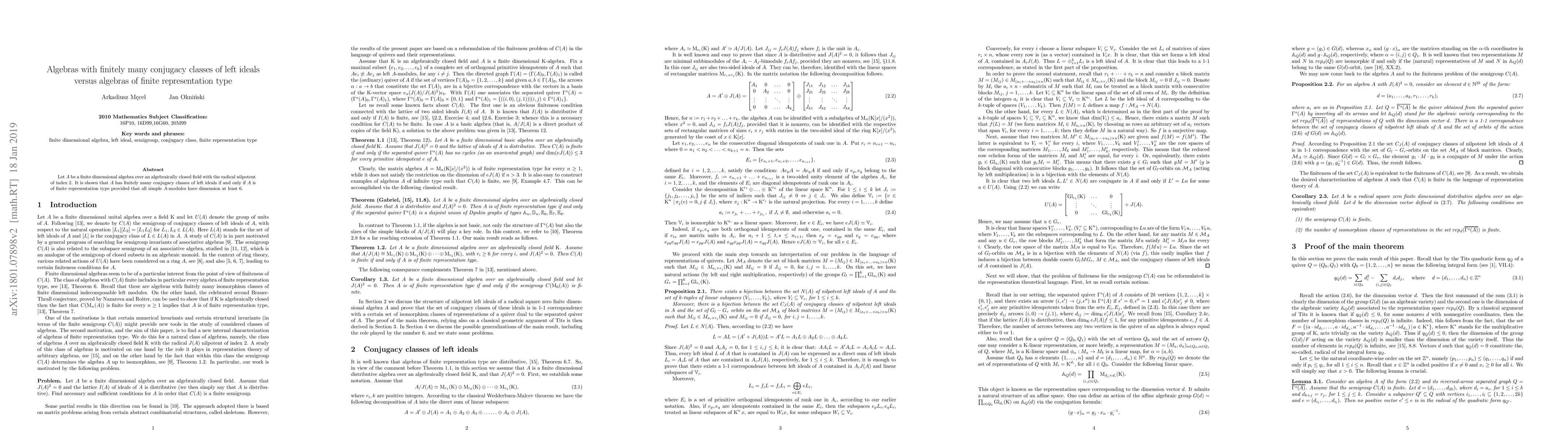 Let A be a finite dimensional algebra over an algebraically closed field with the radical nilpotent of index 2. It is shown that A has finitely many conjugacy classes of left ideals if and only if A is of finite representation type provided that all simple A-modules have dimension at least 6. This is a revised version.