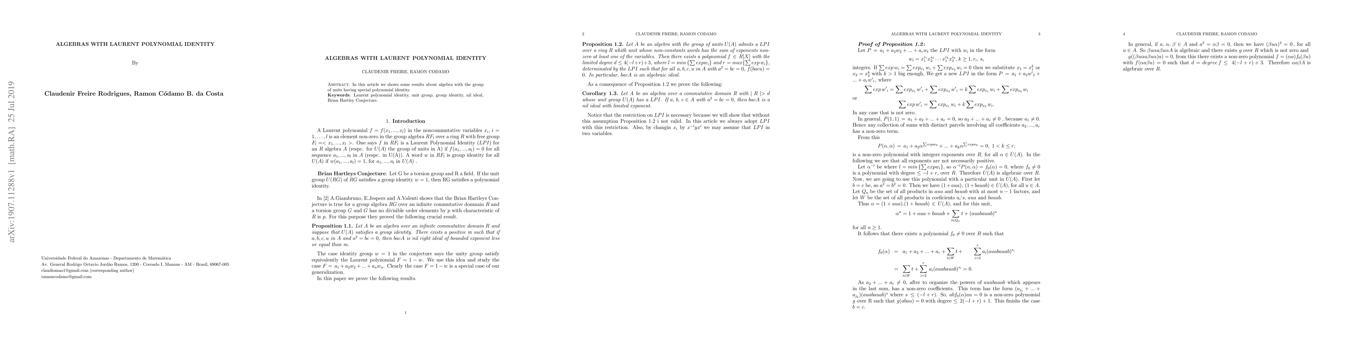 This paper investigates algebras where the group of units satisfies a specific Laurent polynomial identity, providing insights into their structural properties and implications.