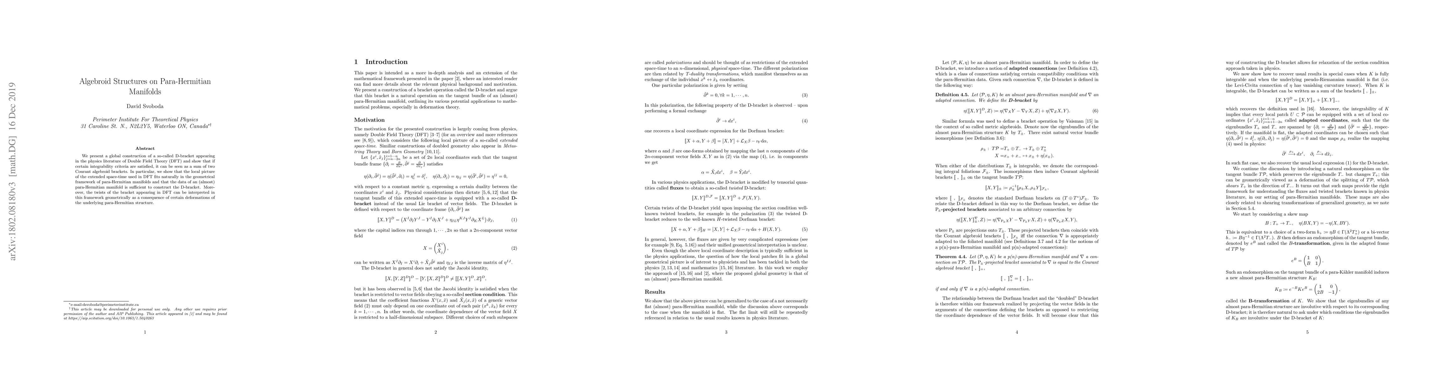 This paper constructs a D-bracket on para-Hermitian manifolds, showing its equivalence to a sum of two Courant algebroid brackets when integrability criteria are met. It demonstrates that Double Field Theory fits into the geometry of para-Hermitian manifolds, using their data to build the D-bracket and interpreting DFT twists geometrically as deformations of the para-Hermitian structure.