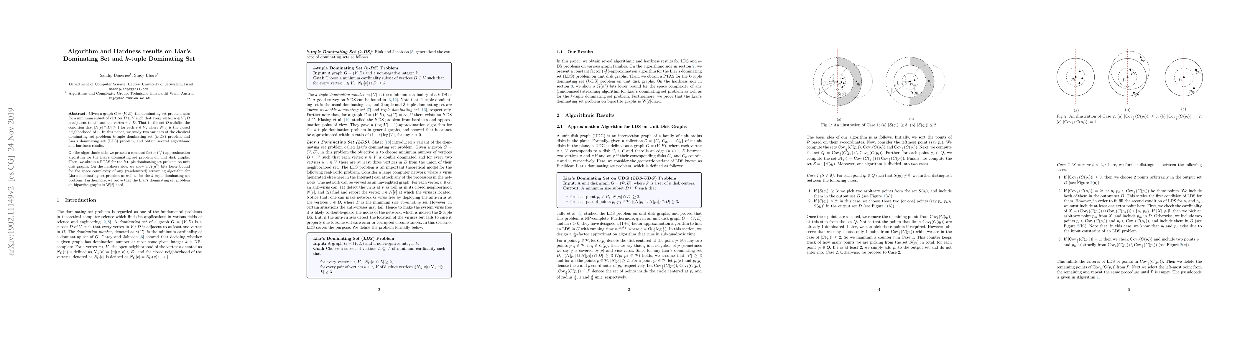 This paper explores algorithmic and hardness results for two variants of the dominating set problem: $k$-tuple dominating set and Liar's dominating set. It presents a constant factor approximation algorithm for Liar's dominating set on unit disk graphs and a PTAS for $k$-tuple dominating set on the same graph type. It also demonstrates a space complexity lower bound for streaming algorithms for both problems and proves Liar's dominating set on bipartite graphs to be W[2]-hard.
