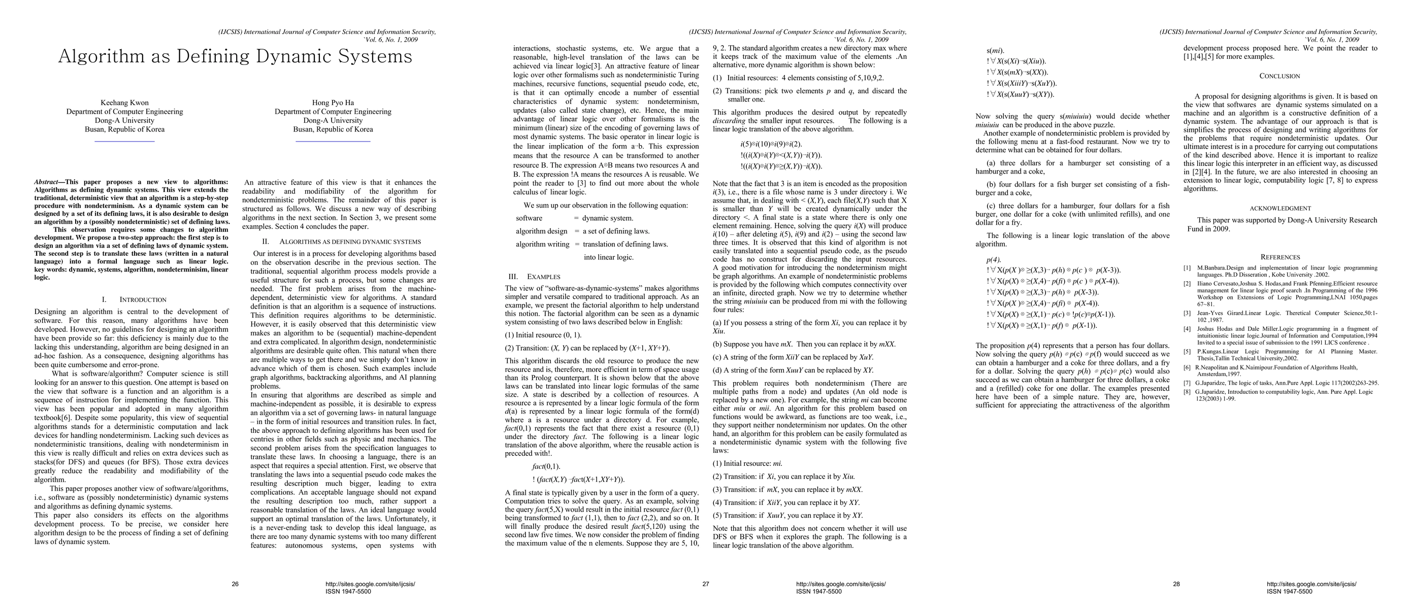 This paper proposes a new view of algorithms as defining dynamic systems, requiring a two-step approach to design and formalize them. It aims to extend traditional deterministic views of algorithms with nondeterminism and introduce linear logic for translation.