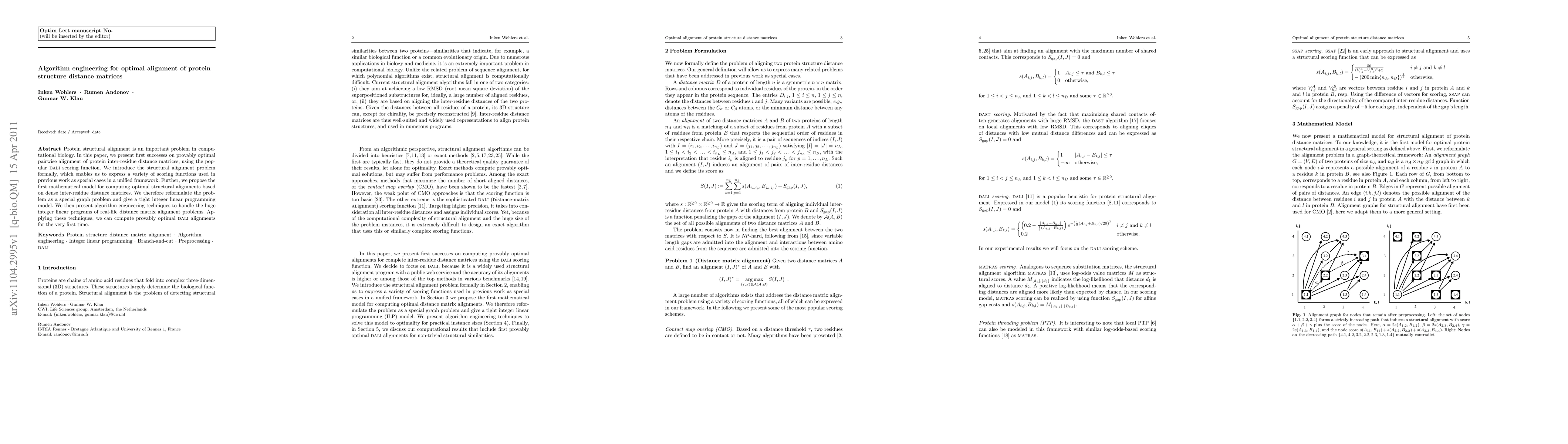 This paper introduces a mathematical model and algorithm engineering techniques to achieve provably optimal pairwise alignment of protein inter-residue distance matrices using the Dali scoring function, reformulating the problem as a special graph problem and solving it via integer linear programming. The techniques enable the first computation of optimal Dali alignments.