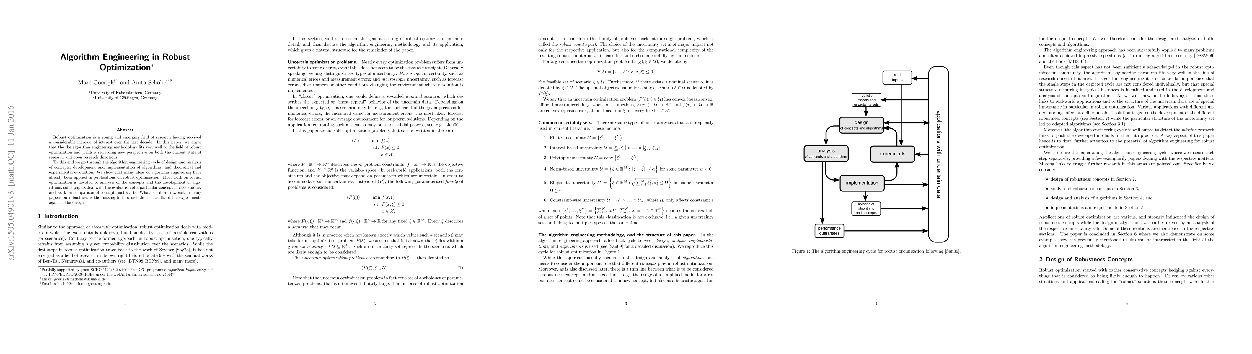 This paper argues that algorithm engineering methodology enhances robust optimization research by providing a structured approach to design, develop, and evaluate algorithms. While current robust optimization literature focuses heavily on concept analysis and algorithm development, it lacks the integration of experimental results back into the design cycle, a gap algorithm engineering aims to fill.