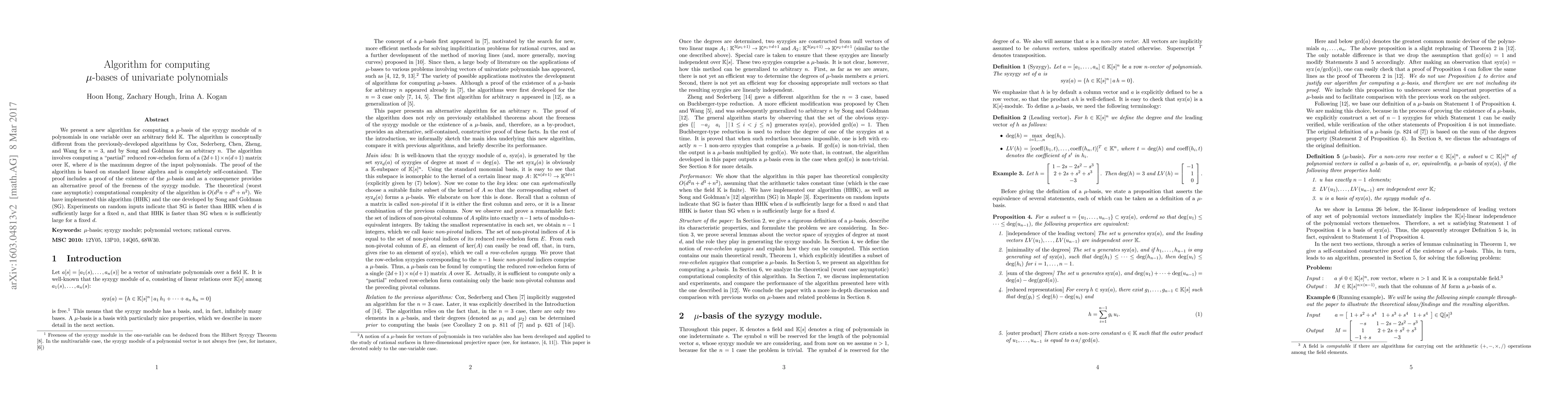 Researchers have developed a new algorithm to compute a Õ-basis of univariate polynomials, offering an alternative solution with better performance in certain scenarios.
