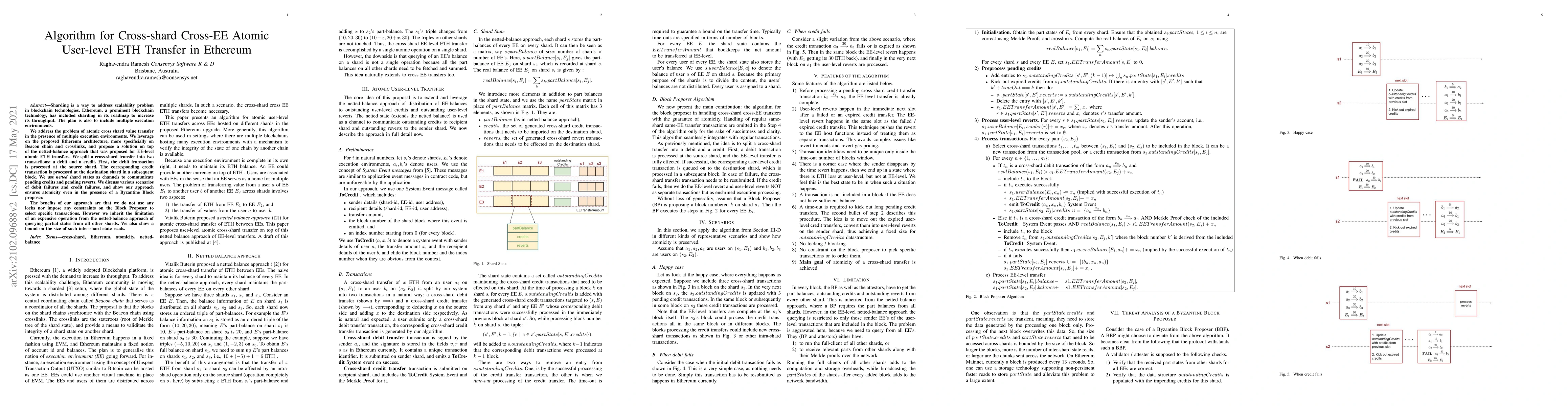 Sharding is a way to address scalability problem in blockchain technologies. Ethereum, a prominent blockchain technology, has included sharding in its roadmap to increase its throughput. The plan is also to include multiple execution environments. We address the problem of atomic cross shard value transfer in the presence of multiple execution environments. We leverage on the proposed Ethereum architecture, more specificially on Beacon chain and crosslinks, and propose a solution on top of the netted-balance approach that was proposed for EE-level atomic \eth transfers. We split a cross-shard transfer into two transactions: a debit and a credit. First, the debit transaction is processed at the source shard. The corresponding credit transaction is processed at the destination shard in a subsequent block. We use {\em netted} shard states as channels to communicate pending credits and pending reverts. We discuss various scenarios of debit failures and credit failures, and show our approach ensures atomicity even in the presence of a Byzantine Block proposer. The benefits of our approach are that we do not use any locks nor impose any constraints on the Block Proposer to select specific transactions. However we inherit the limitation of an expensive operation from the netted-balance approach of querying partial states from all other shards. We also show a bound on the size of such inter-shard state reads.