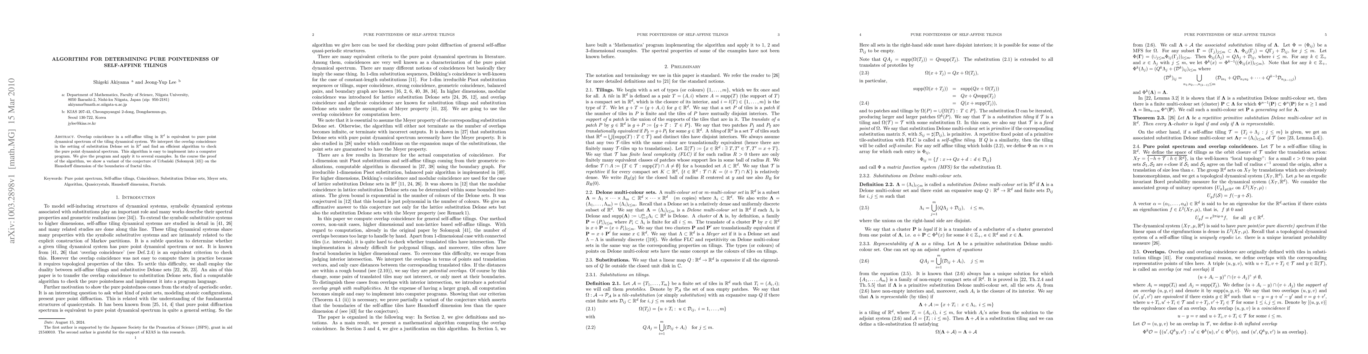 Overlap coincidence in a self-affine tiling in $\R^d$ is equivalent to pure point dynamical spectrum of the tiling dynamical system. We interpret the overlap coincidence in the setting of substitution Delone set in $\R^d$ and find an efficient algorithm to check the pure point dynamical spectrum. This algorithm is easy to implement into a computer program. We give the program and apply it to several examples. In the course the proof of the algorithm, we show a variant of the conjecture of Urba\'nski (Solomyak \cite{Solomyak:08}) on the Hausdorff dimension of the boundaries of fractal tiles.