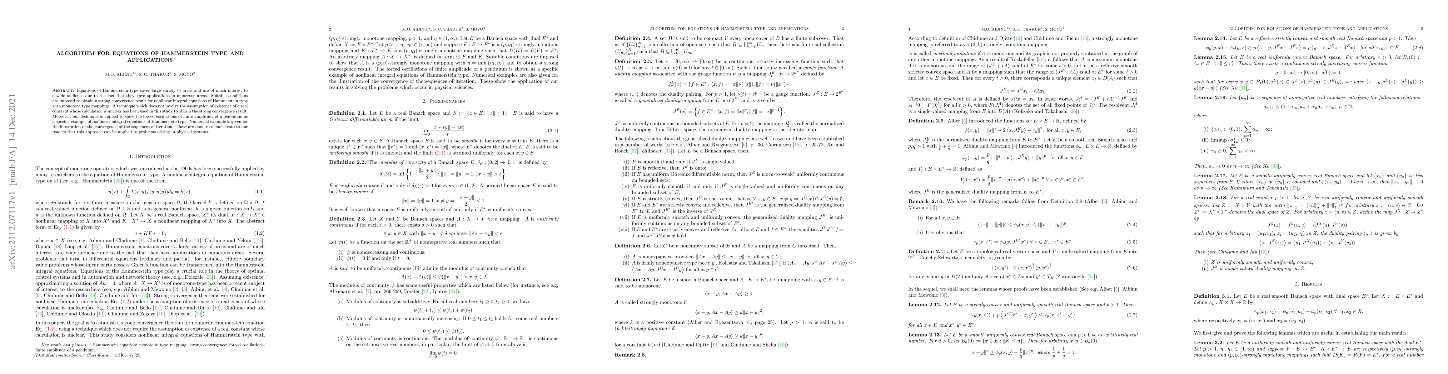 This research presents an algorithm for solving Hammerstein type nonlinear integral equations under suitable conditions, ensuring strong convergence without requiring a real constant's calculation. The method is exemplified through demonstrating forced oscillations in a pendulum system, alongside a numerical example illustrating the algorithm's effectiveness in physical applications.