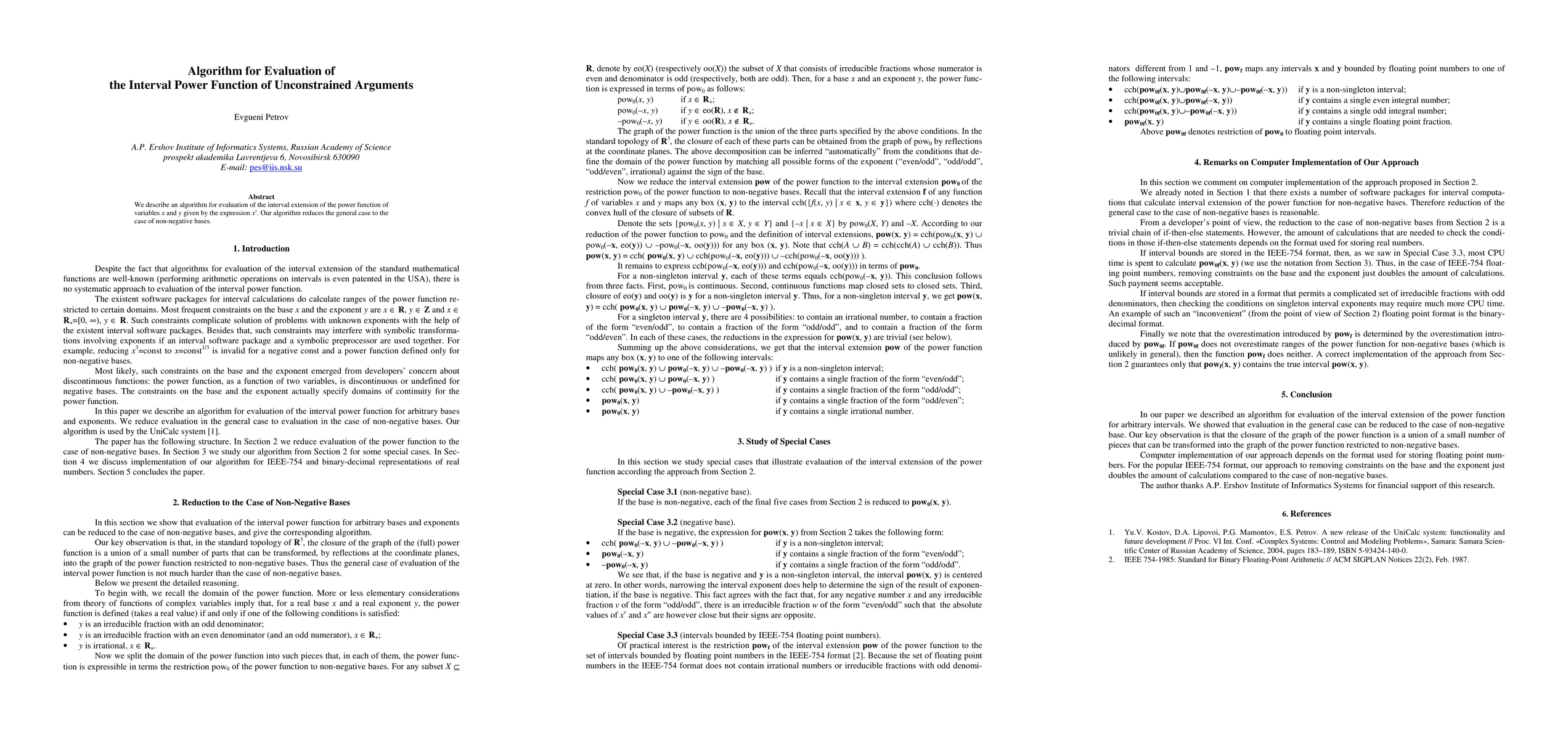 We describe an algorithm for evaluation of the interval extension of the power function of variables x and y given by the expression x^y. Our algorithm reduces the general case to the case of non-negative bases.
