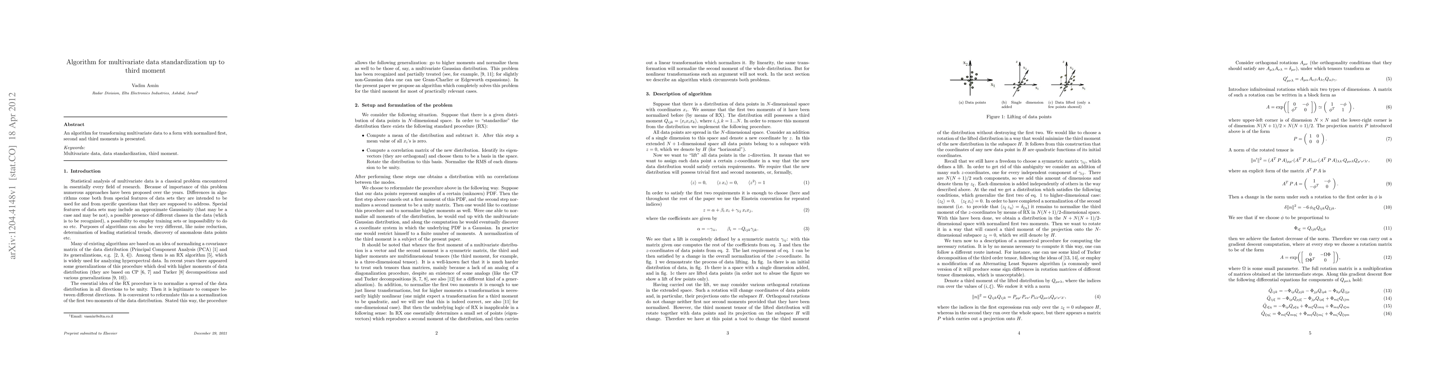 An algorithm for transforming multivariate data to a form with normalized first, second and third moments is presented.