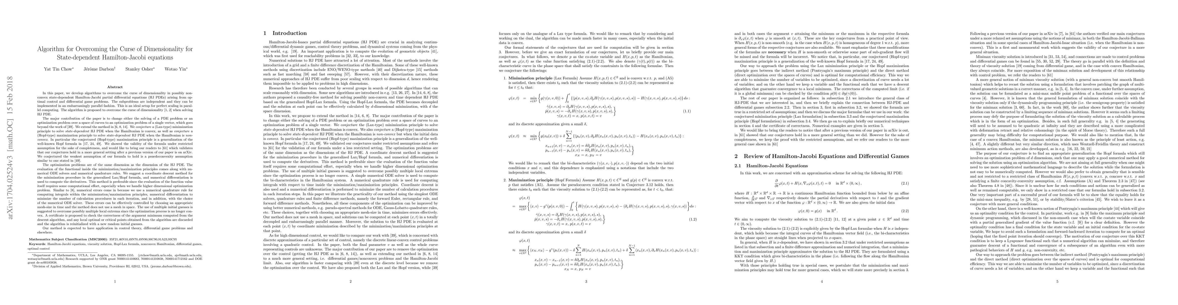 This paper proposes algorithms to tackle the curse of dimensionality in solving non-convex state-dependent Hamilton-Jacobi equations, transforming the problem into an optimization of a single vector. The method includes a coordinate descent approach and numerical differentiation, and is validated under certain assumptions, with potential applications in control theory and differential games.