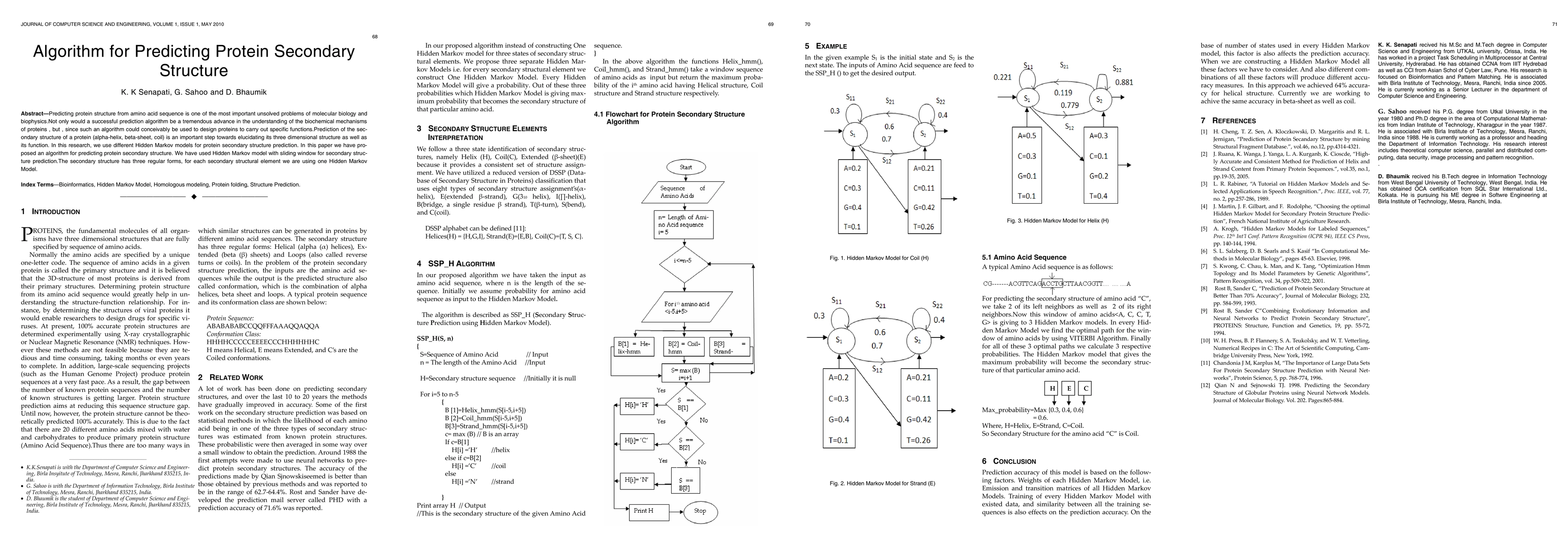 This research proposes an algorithm using Hidden Markov models with sliding windows to predict protein secondary structures (alpha-helix, beta-sheet, coil), which is crucial for understanding protein function and three-dimensional structure. The method employs separate Hidden Markov Models for each secondary structural element.