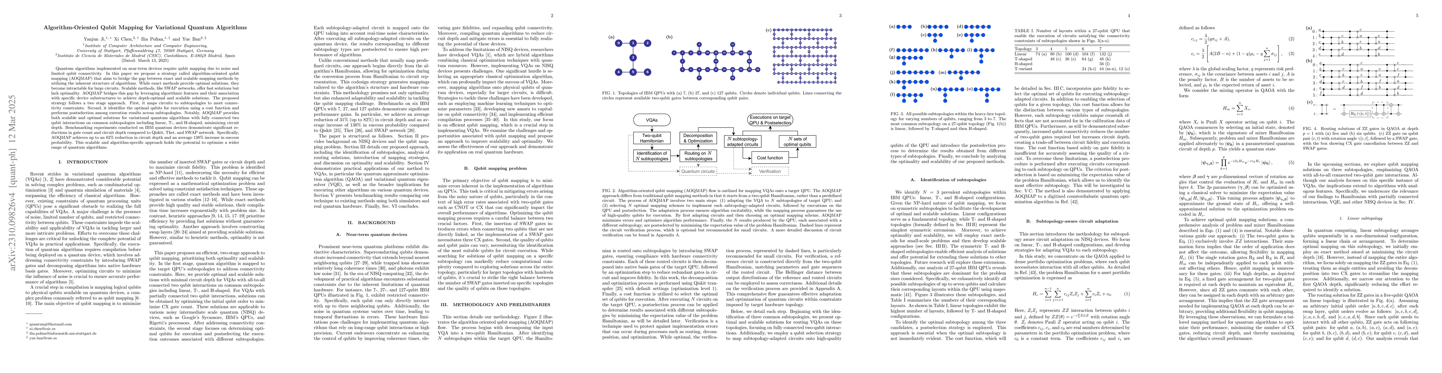 This paper introduces an algorithm-oriented qubit mapping (AOQMAP) to optimize variational quantum algorithms on near-term quantum devices by leveraging regular substructures within algorithms. AOQMAP reduces gate count and circuit depth significantly, achieving up to 82.1% depth reduction and a 138% increase in success probability compared to traditional methods.