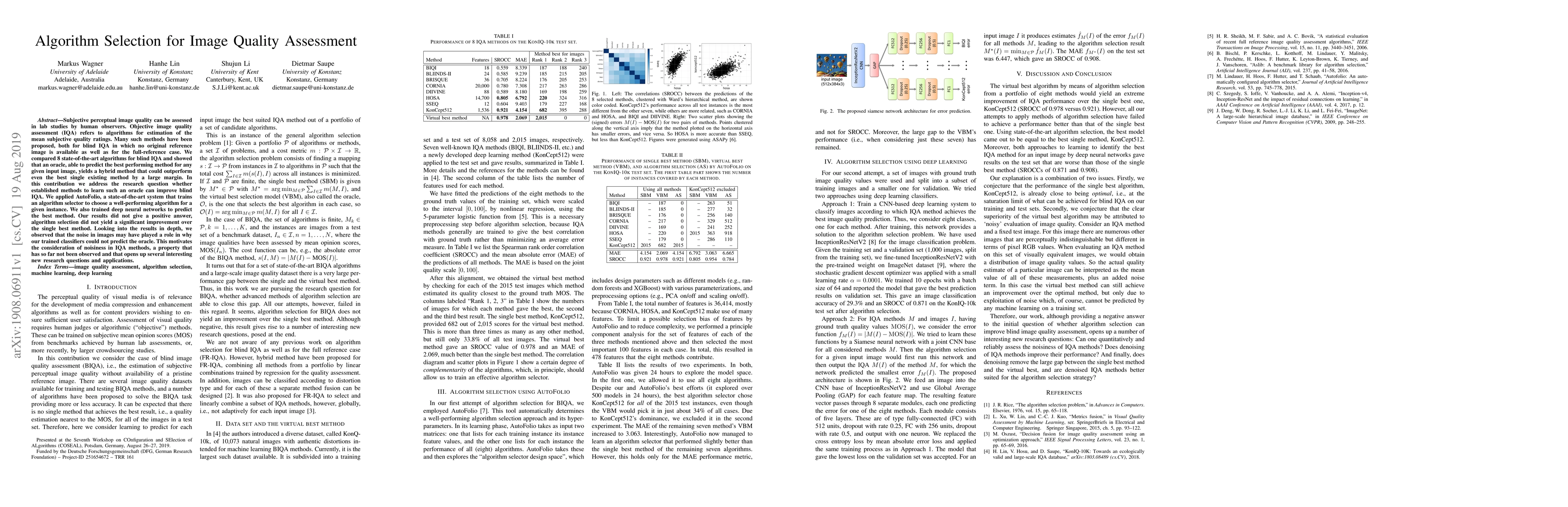 Subjective perceptual image quality can be assessed in lab studies by human observers. Objective image quality assessment (IQA) refers to algorithms for estimation of the mean subjective quality ratings. Many such methods have been proposed, both for blind IQA in which no original reference image is available as well as for the full-reference case. We compared 8 state-of-the-art algorithms for blind IQA and showed that an oracle, able to predict the best performing method for any given input image, yields a hybrid method that could outperform even the best single existing method by a large margin. In this contribution we address the research question whether established methods to learn such an oracle can improve blind IQA. We applied AutoFolio, a state-of-the-art system that trains an algorithm selector to choose a well-performing algorithm for a given instance. We also trained deep neural networks to predict the best method. Our results did not give a positive answer, algorithm selection did not yield a significant improvement over the single best method. Looking into the results in depth, we observed that the noise in images may have played a role in why our trained classifiers could not predict the oracle. This motivates the consideration of noisiness in IQA methods, a property that has so far not been observed and that opens up several interesting new research questions and applications.
