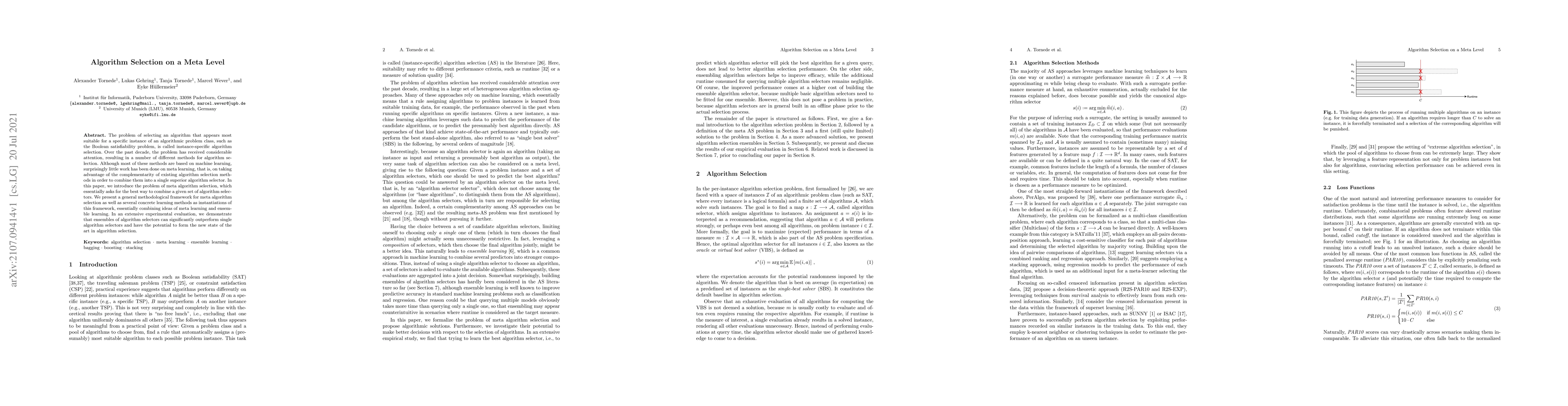 This paper explores meta algorithm selection, focusing on combining existing algorithm selectors to create a superior ensemble. It proposes a methodological framework and demonstrates through experiments that such ensembles can significantly outperform individual selectors, suggesting a new direction in algorithm selection.