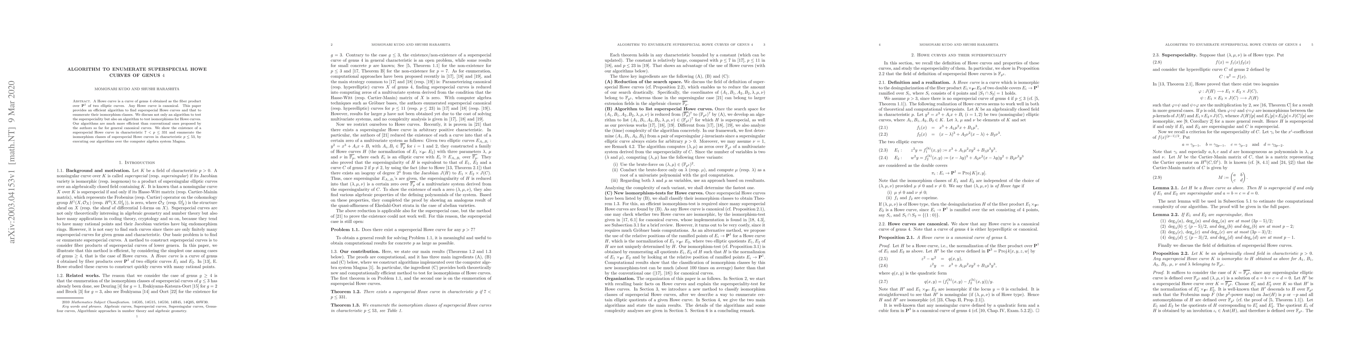 A Howe curve is a curve of genus $4$ obtained as the fiber product over $\mathbf{P}^1$ of two elliptic curves. Any Howe curve is canonical. This paper provides an efficient algorithm to find superspecial Howe curves and that to enumerate their isomorphism classes. We discuss not only an algorithm to test the superspeciality but also an algorithm to test isomorphisms for Howe curves. Our algorithms are much more efficient than conventional ones proposed by the authors so far for general canonical curves. We show the existence of a superspecial Howe curve in characteristic $7