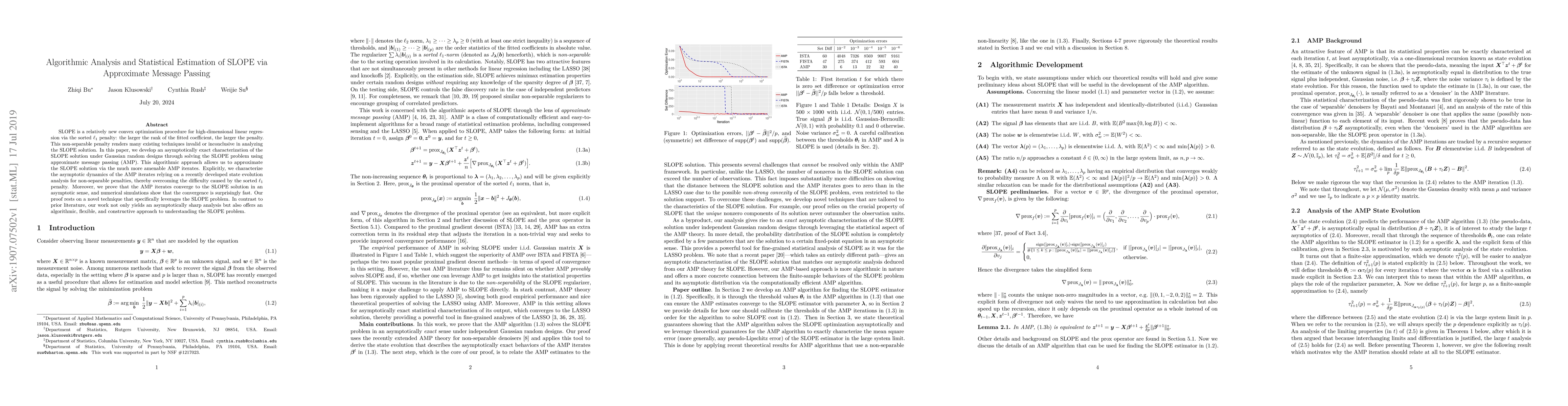 This paper develops an asymptotically exact analysis of the SLOPE optimization procedure using approximate message passing (AMP) and state evolution, showing AMP iterates converge to the SLOPE solution. The approach provides a novel, flexible, and constructive method for understanding high-dimensional linear regression with the sorted l1 penalty.