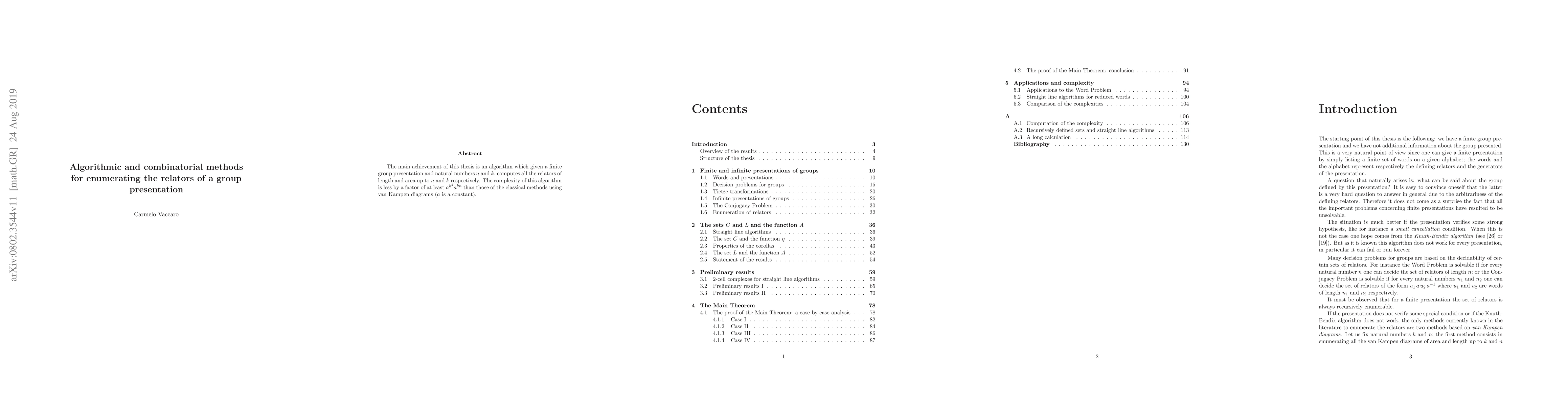 The main achievement of this thesis is an algorithm which given a finite group presentation and natural numbers n and k, computes all the relators of length and area up to n and k respectively. The complexity of this algorithm is better by a factor which is over-exponential than that of classical methods using van Kampen diagrams.