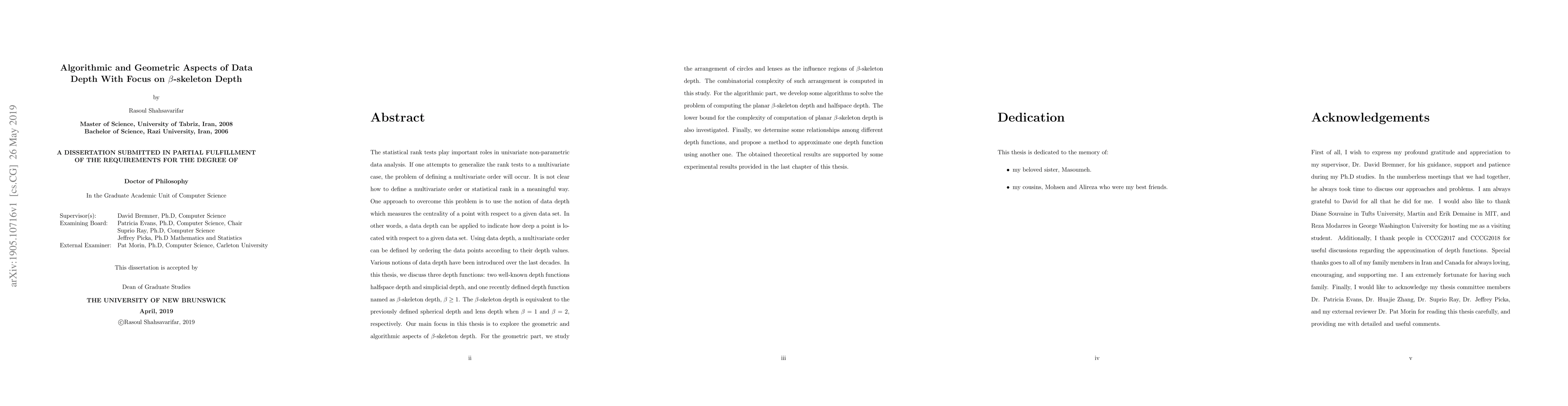 This research paper explores the geometric and algorithmic aspects of beta-skeleton depth, a multivariate order measure that uses data depth to define a meaningful order in non-parametric data analysis.