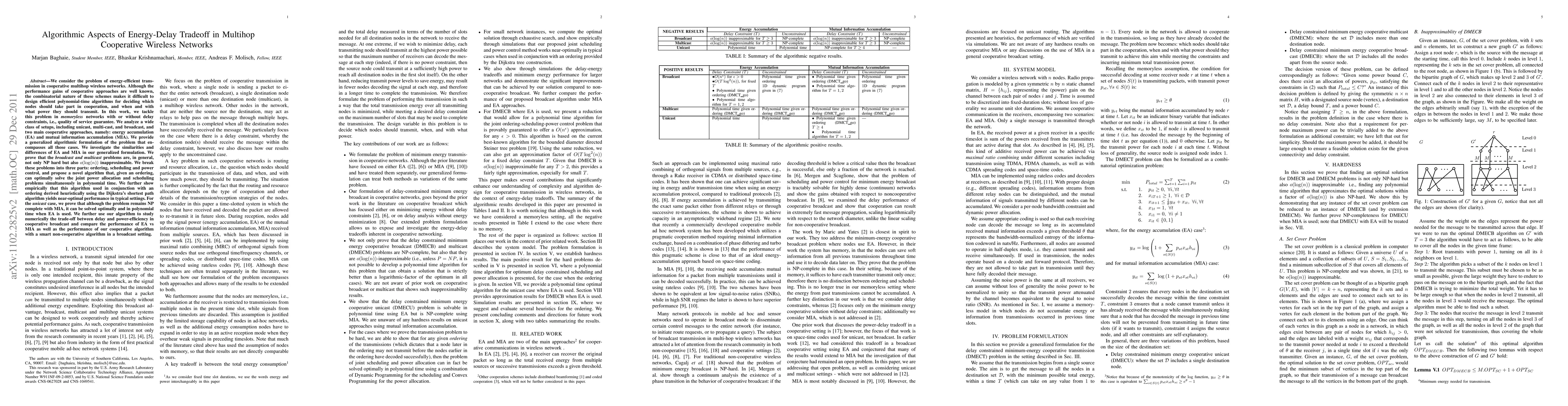 This paper addresses the algorithmic challenges of energy-efficient transmission in delay-constrained cooperative multihop wireless networks, proposing novel algorithms for optimal power allocation and scheduling. It proves the NP-hardness of broadcast and multicast problems and introduces a polynomial-time algorithm for unicast, demonstrating near-optimal performance in typical settings.