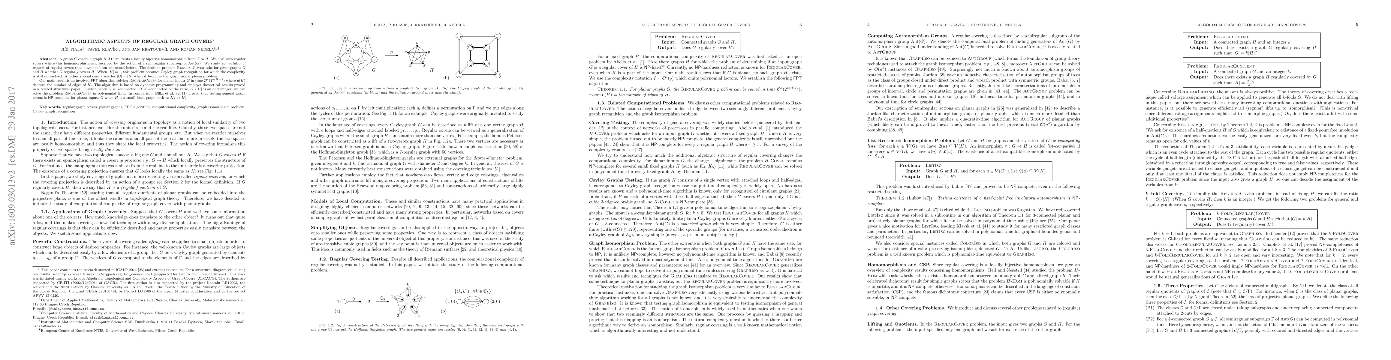 The paper addresses computational aspects of determining whether a regular graph $G$ covers another graph $H$ under a semiregular automorphism, introducing a fixed-parameter tractable (FPT) algorithm for planar graphs. It also solves the problem in polynomial time for specific conditions, contrasting with the NP-completeness of general graph covers.