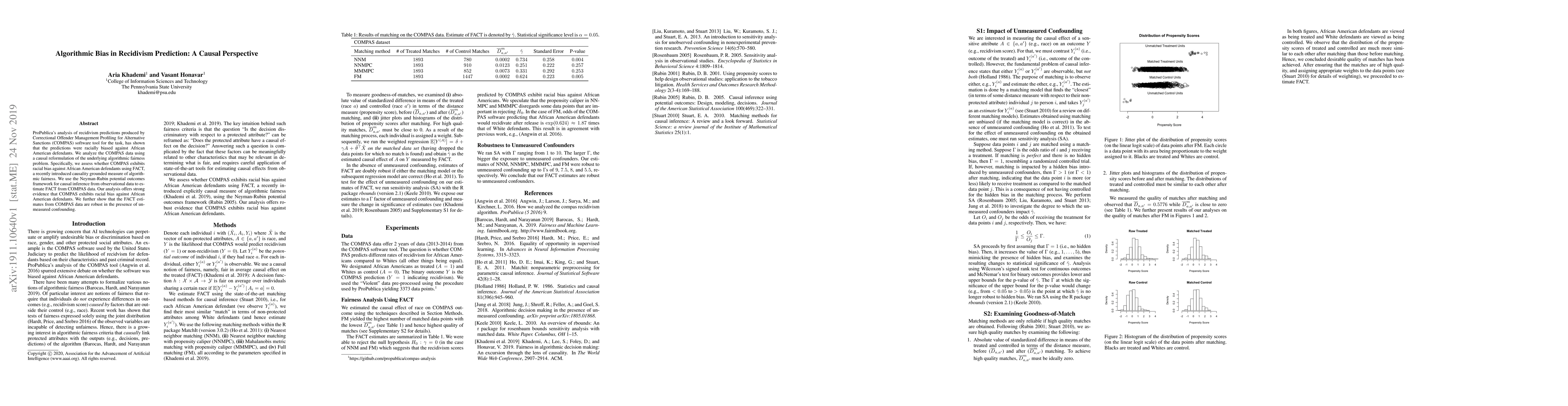 ProPublica's analysis of recidivism predictions produced by Correctional Offender Management Profiling for Alternative Sanctions (COMPAS) software tool for the task, has shown that the predictions were racially biased against African American defendants. We analyze the COMPAS data using a causal reformulation of the underlying algorithmic fairness problem. Specifically, we assess whether COMPAS exhibits racial bias against African American defendants using FACT, a recently introduced causality grounded measure of algorithmic fairness. We use the Neyman-Rubin potential outcomes framework for causal inference from observational data to estimate FACT from COMPAS data. Our analysis offers strong evidence that COMPAS exhibits racial bias against African American defendants. We further show that the FACT estimates from COMPAS data are robust in the presence of unmeasured confounding.