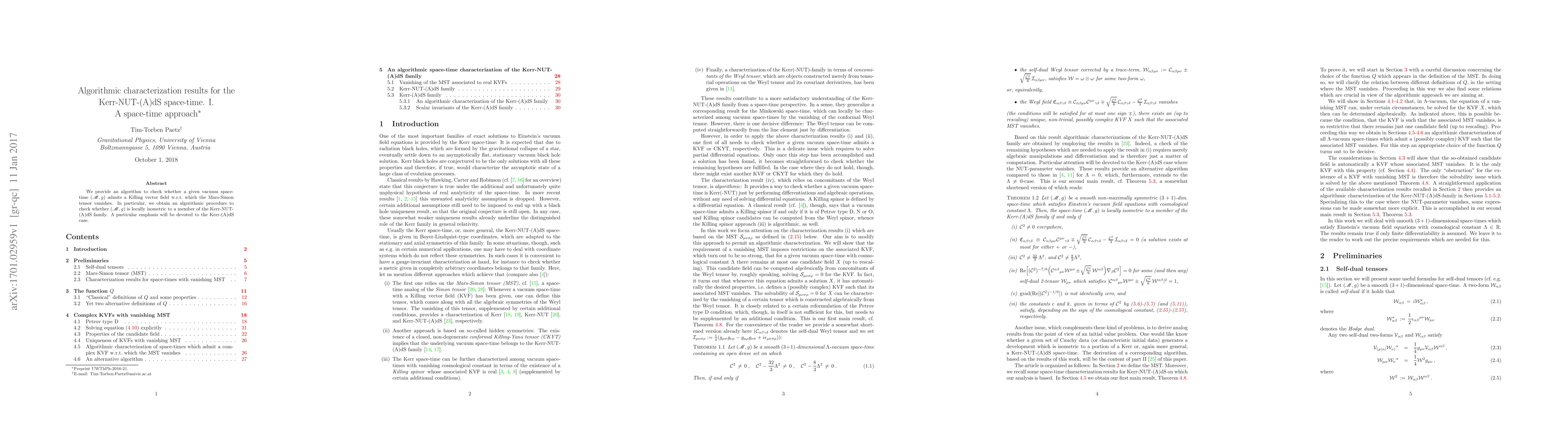 We provide an algorithm to check whether a given vacuum space-time $(\mathcal{M},g)$ admits a Killing vector field w.r.t. which the Mars-Simon tensor vanishes. In particular, we obtain an algorithmic procedure to check whether $(\mathcal{M},g)$ is locally isometric to a member of the Kerr-NUT-(A)dS family. A particular emphasis will be devoted to the Kerr-(A)dS case.
