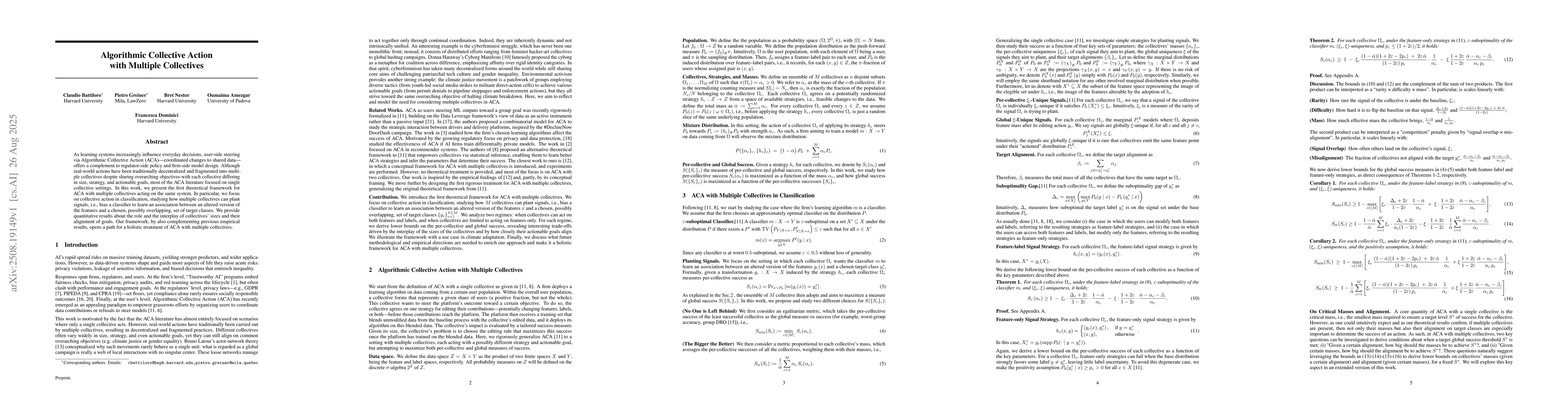 As learning systems increasingly influence everyday decisions, user-side steering via Algorithmic Collective Action (ACA)-coordinated changes to shared data-offers a complement to regulator-side policy and firm-side model design. Although real-world actions have been traditionally decentralized and fragmented into multiple collectives despite sharing overarching objectives-with each collective differing in size, strategy, and actionable goals, most of the ACA literature focused on single collective settings. In this work, we present the first theoretical framework for ACA with multiple collectives acting on the same system. In particular, we focus on collective action in classification, studying how multiple collectives can plant signals, i.e., bias a classifier to learn an association between an altered version of the features and a chosen, possibly overlapping, set of target classes. We provide quantitative results about the role and the interplay of collectives' sizes and their alignment of goals. Our framework, by also complementing previous empirical results, opens a path for a holistic treatment of ACA with multiple collectives.