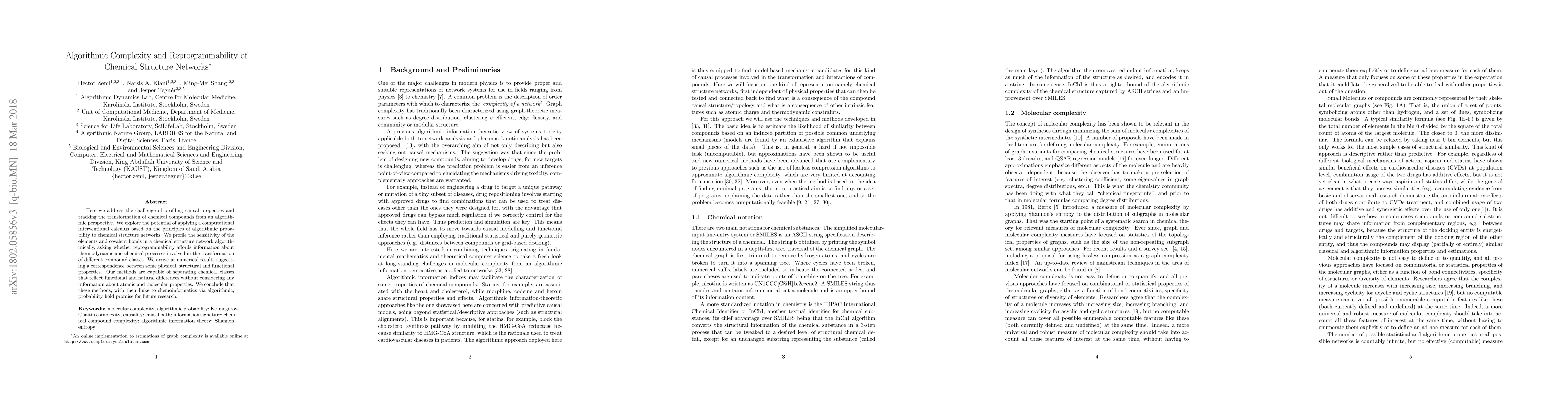 This research applies algorithmic probability to chemical structure networks, profiling their sensitivity and reprogrammability. Results suggest a link between algorithmic properties and thermodynamic/chemical processes, indicating potential for future chemoinformatics research using algorithmic, probability-based methods.