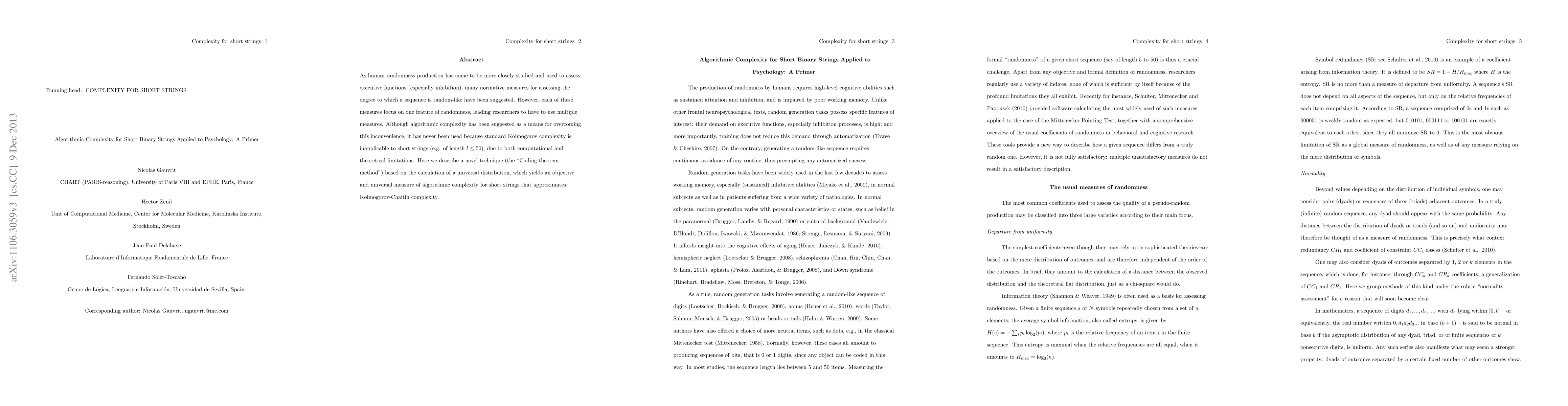 This paper advocates for the use of algorithmic complexity as a universal measure for assessing randomness in human behavior, particularly in psychology studies of executive functions. It introduces a novel technique based on algorithmic probability and applies it to re-analyze the Radio Zenith data for better understanding.