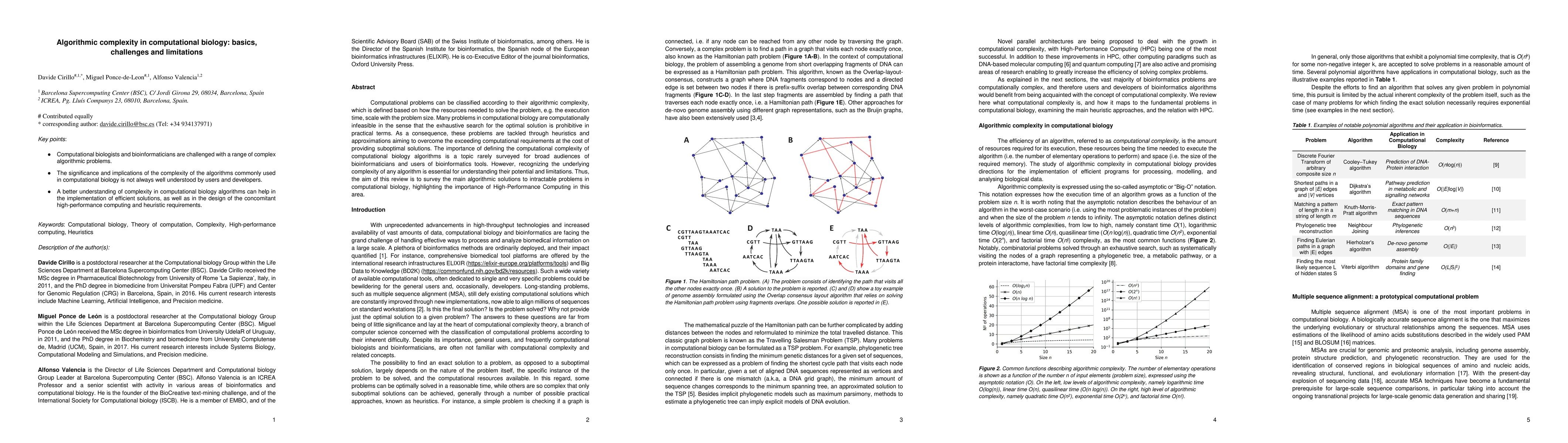 This paper reviews the algorithmic complexity of computational biology problems, emphasizing the challenges posed by infeasible exhaustive searches and the necessity of heuristics and approximations. It underscores the importance of understanding computational complexity for appreciating the potential and limitations of bioinformatics algorithms, and highlights the role of High-Performance Computing in addressing these challenges.