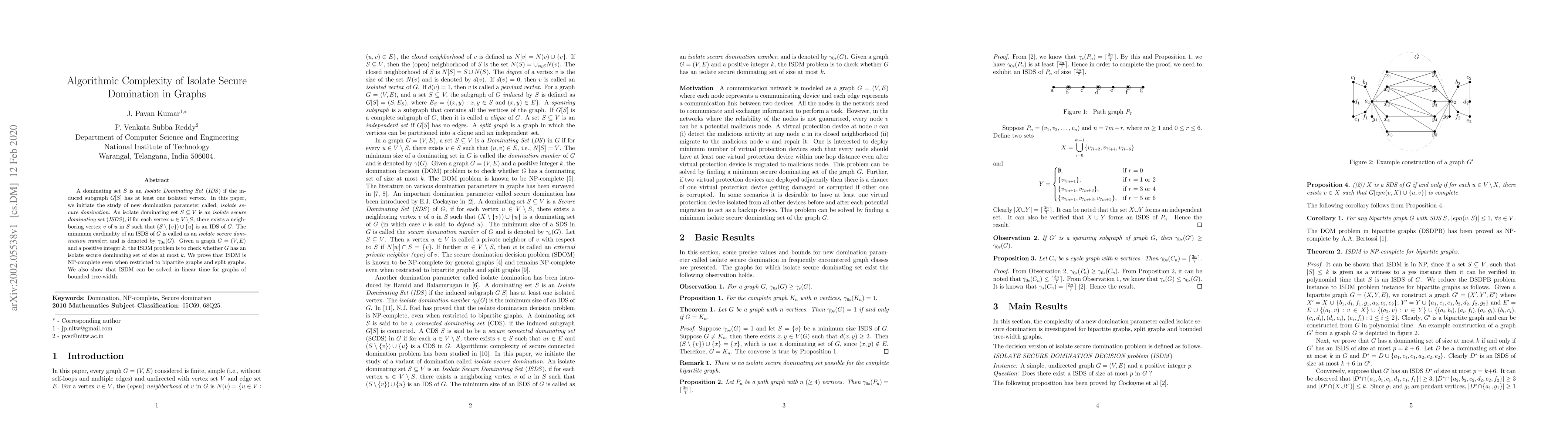 Researchers proved that Isolate Secure Domination (ISDM) is NP-complete in bipartite and split graphs, but found a linear-time solution for graphs with bounded tree-width, highlighting the complexity of this new domination parameter.