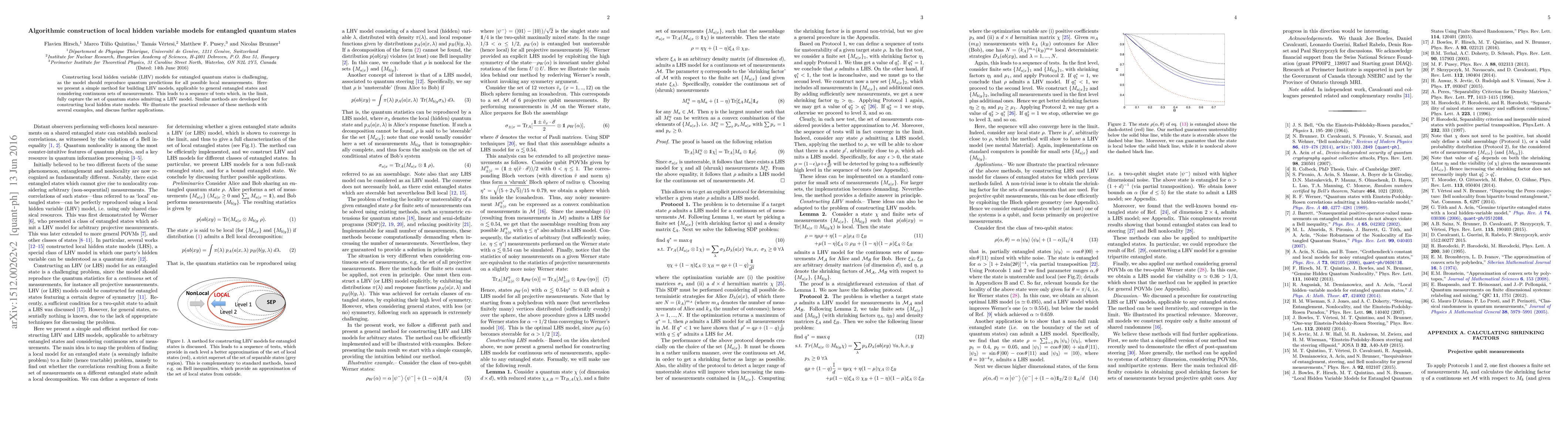 This paper presents a method for constructing local hidden variable models for entangled quantum states by verifying the locality of statistics from a finite set of measurements, which simplifies the problem and leads to a sequence of tests that, in the limit, fully capture the quantum states admitting such models. Practical examples and potential applications are also discussed.