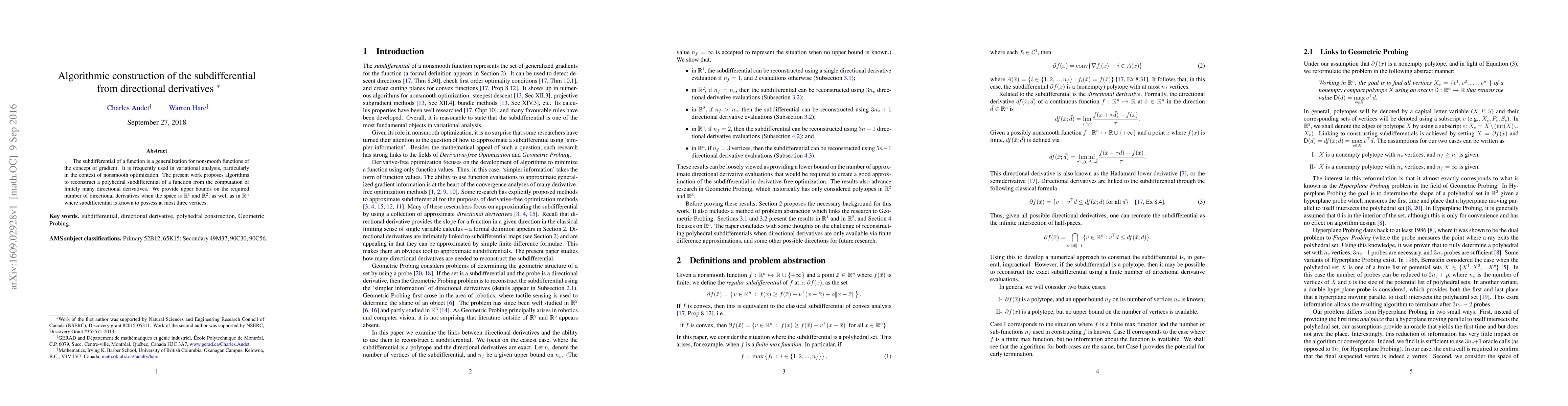 The subdifferential of a function is a generalization for nonsmooth functions of the concept of gradient. It is frequently used in variational analysis, particularly in the context of nonsmooth optimization. The present work proposes algorithms to reconstruct a polyhedral subdifferential of a function from the computation of finitely many directional derivatives. We provide upper bounds on the required number of directional derivatives when the space is $\R^1$ and $\R^2$, as well as in $\R^n$ where subdifferential is known to possess at most three vertices.