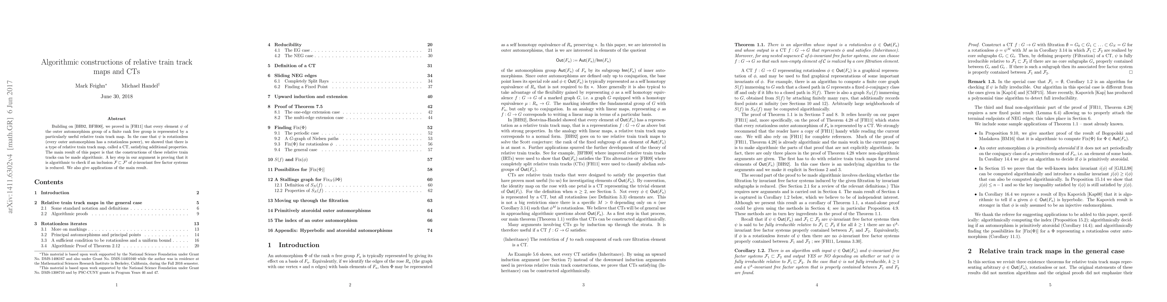 This paper presents an algorithmic construction for relative train track maps known as CTs, which represent rotationless outer automorphisms of finite rank free groups. It demonstrates the algorithmic check for reduced inclusions of invariant free factor systems, with broader applications and constructions for general cases.