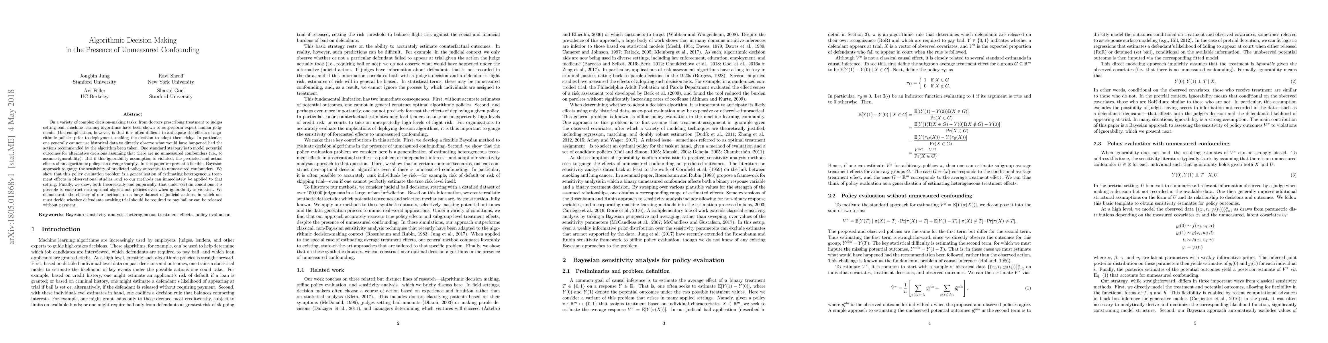 Researchers developed a Bayesian approach to evaluate algorithmic decision-making policies in the presence of unmeasured confounders, showing it's possible to construct near-optimal policies even when ignorability is violated.