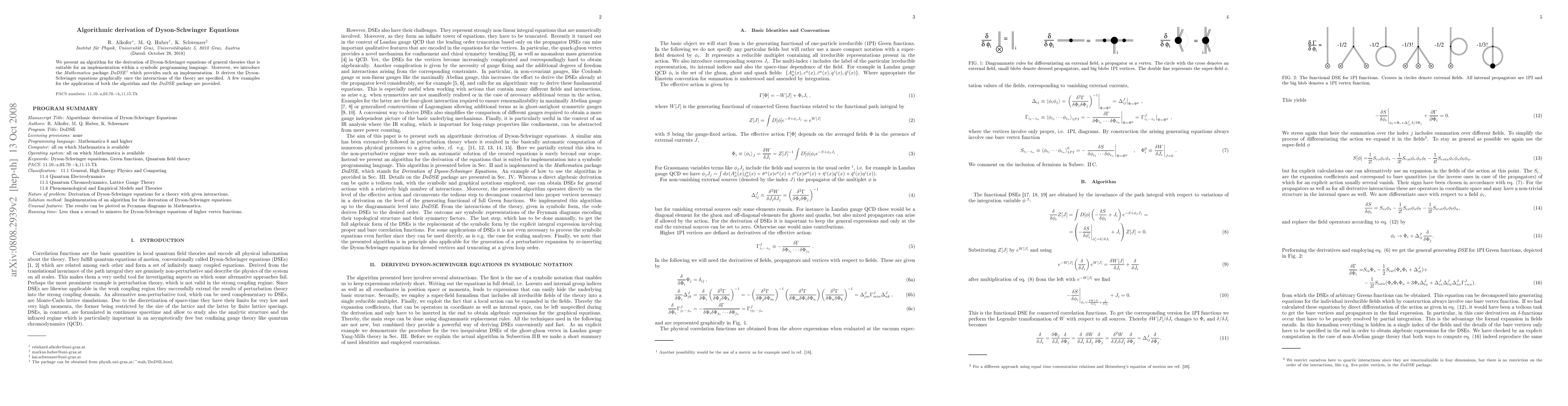 This paper introduces an algorithm for deriving Dyson-Schwinger equations in general theories, implemented in the Mathematica package DoDSE, which graphically generates these equations from specified interactions. The package is available for download online.
