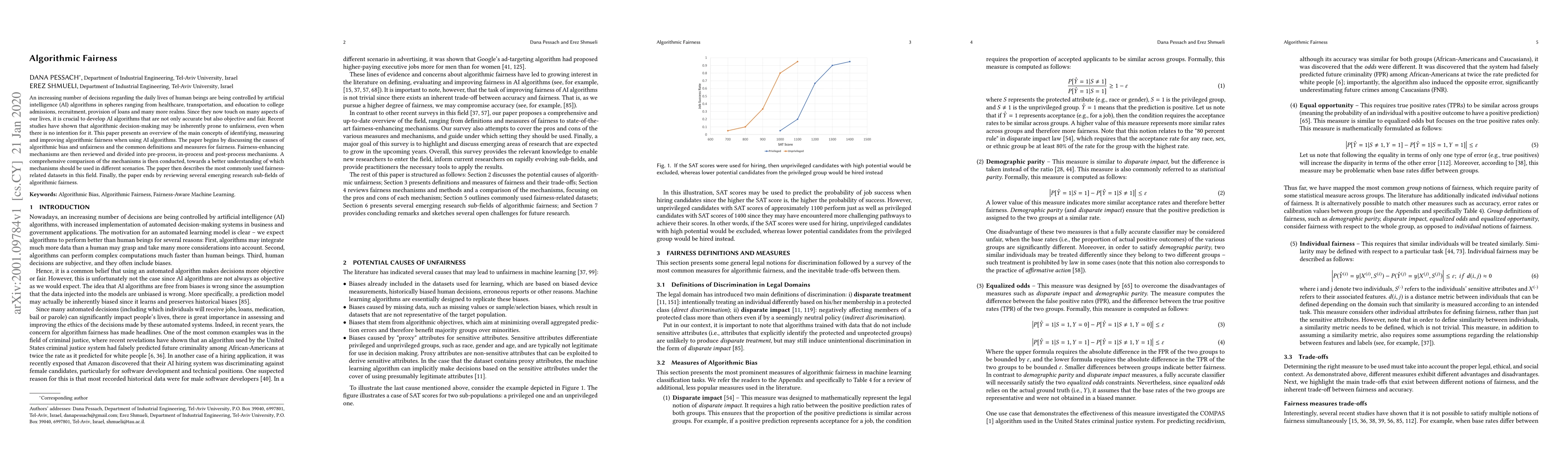 This paper explores the concepts of algorithmic fairness in AI, discussing the causes of bias and various fairness measures. It reviews fairness-enhancing mechanisms categorized into pre-process, in-process, and post-process, and compares them for different scenarios, concluding with an overview of common datasets and emerging research sub-fields.