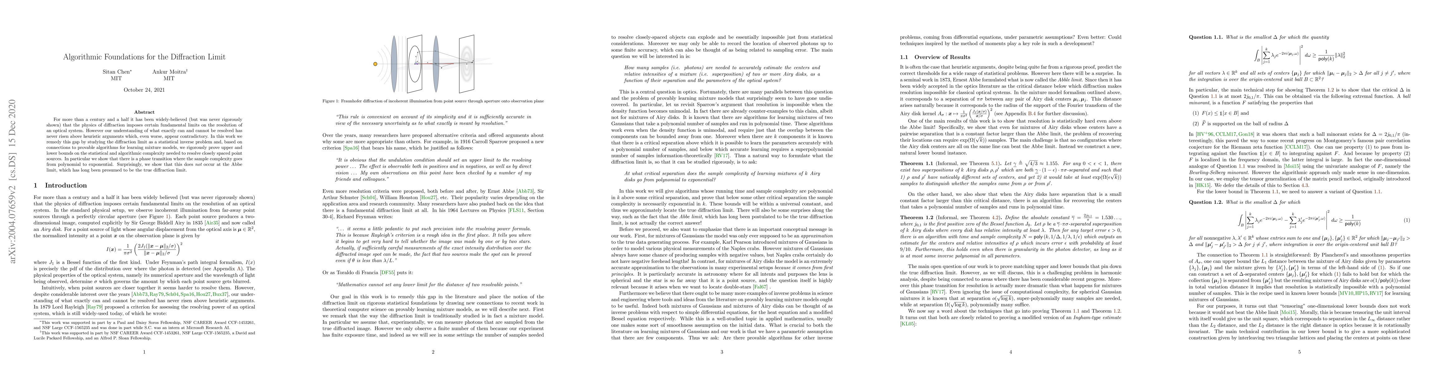 For more than a century and a half it has been widely-believed (but was never rigorously shown) that the physics of diffraction imposes certain fundamental limits on the resolution of an optical system. However our understanding of what exactly can and cannot be resolved has never risen above heuristic arguments which, even worse, appear contradictory. In this work we remedy this gap by studying the diffraction limit as a statistical inverse problem and, based on connections to provable algorithms for learning mixture models, we rigorously prove upper and lower bounds on the statistical and algorithmic complexity needed to resolve closely spaced point sources. In particular we show that there is a phase transition where the sample complexity goes from polynomial to exponential. Surprisingly, we show that this does not occur at the Abbe limit, which has long been presumed to be the true diffraction limit.