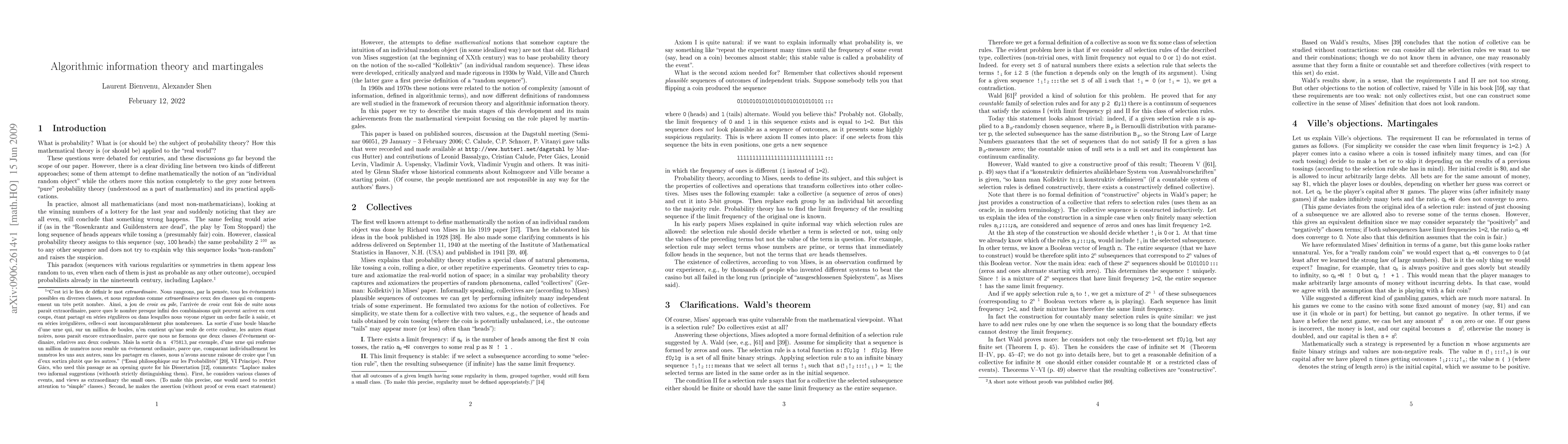 This paper traces the evolution of the concept of individual random sequences from von Mises, highlighting the role of martingales introduced by Ville and the development of algorithmic information theory in the 1960s and 1970s by researchers like Solomonov, Kolmogorov, and Martin-Löf. It concludes with observations on the application of algorithmic information theory in the foundations of probability theory.