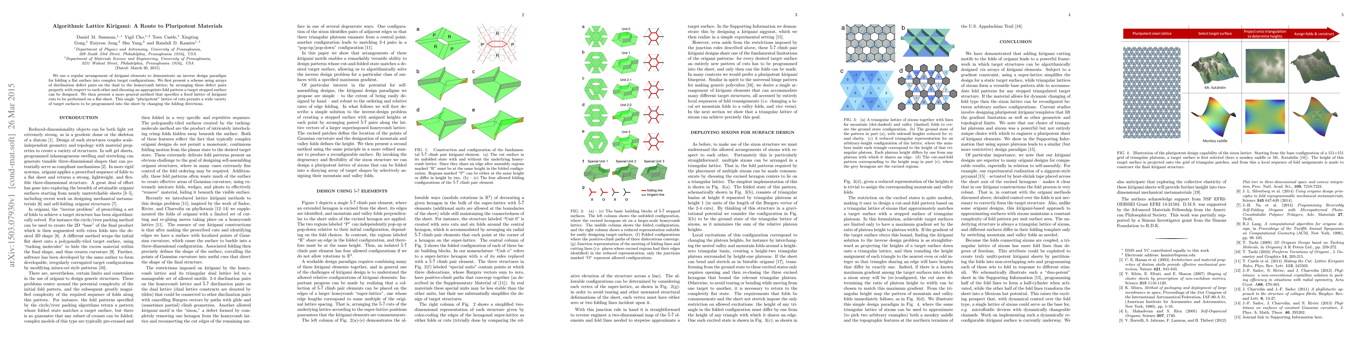We use a regular arrangement of kirigami elements to demonstrate an inverse design paradigm for folding a flat surface into complex target configurations. We first present a scheme using arrays of disclination defect pairs on the dual to the honeycomb lattice; by arranging these defect pairs properly with respect to each other and choosing an appropriate fold pattern a target stepped surface can be designed. We then present a more general method that specifies a fixed lattice of kirigami cuts to be performed on a flat sheet. This single "pluripotent" lattice of cuts permits a wide variety of target surfaces to be programmed into the sheet by changing the folding directions.