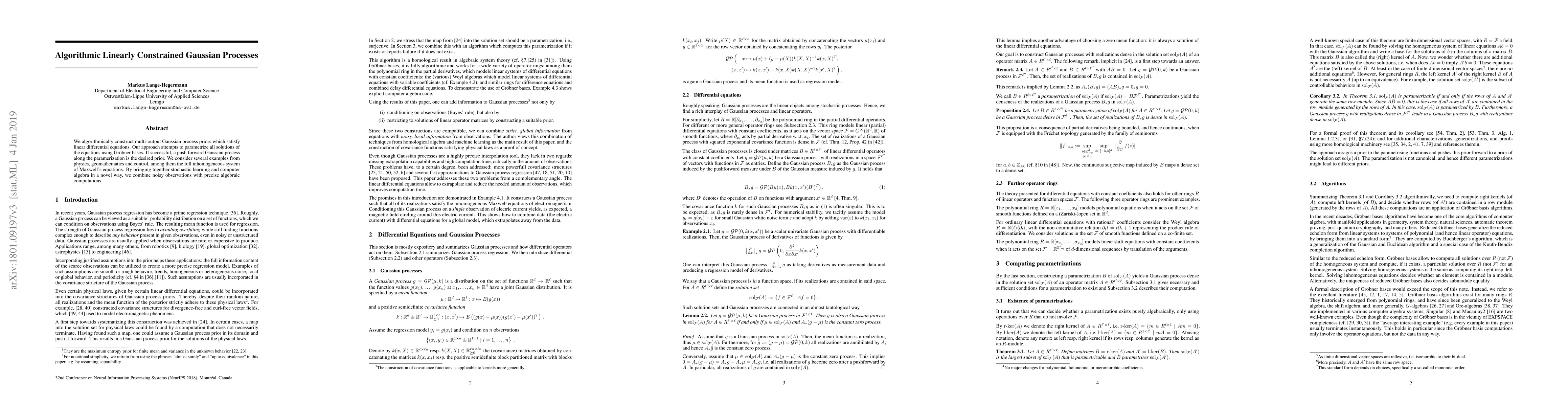 Researchers developed a method to create Gaussian process priors that satisfy linear differential equations using Gr"{o}bner bases, enabling precise algebraic computations with noisy observations in physics, geomathematics, and control applications.