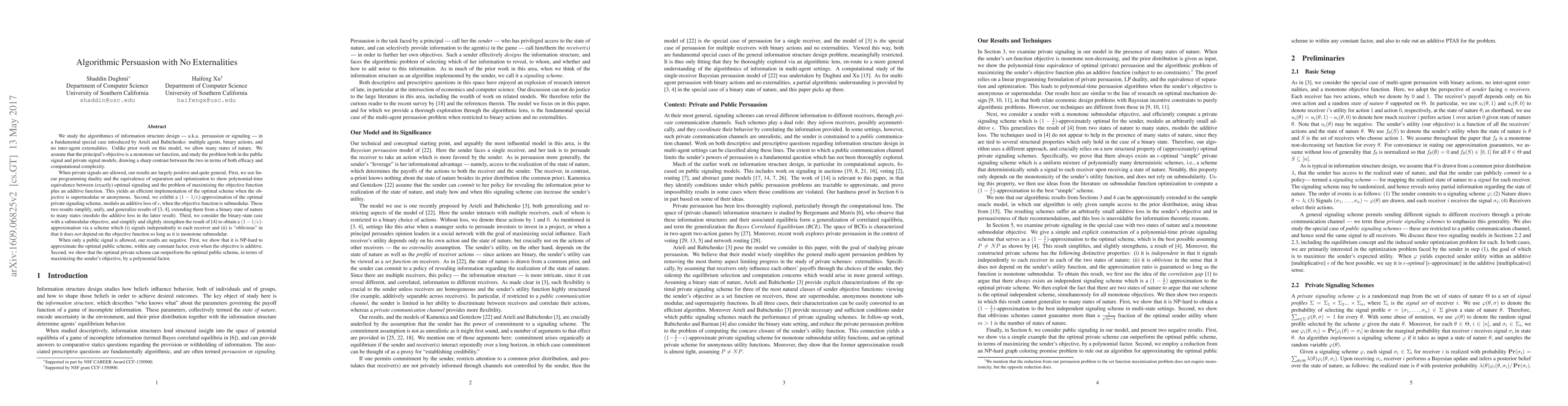 Researchers study algorithmic persuasion with no externalities in a model with multiple agents, binary actions, and many states of nature. They find that allowing private signals leads to efficient and general solutions, while public signals result in NP-hard approximation problems.