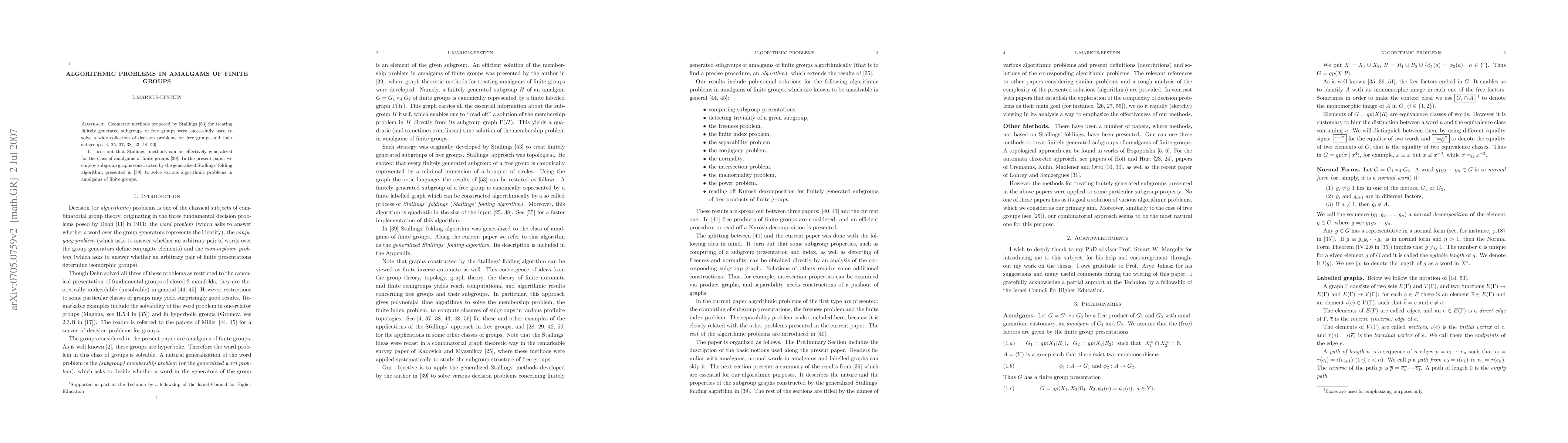 This paper generalizes Stallings' geometric methods for solving algorithmic problems in amalgams of finite groups using subgroup graphs derived from a modified folding algorithm. The approach successfully addresses a range of decision problems within this class of groups.