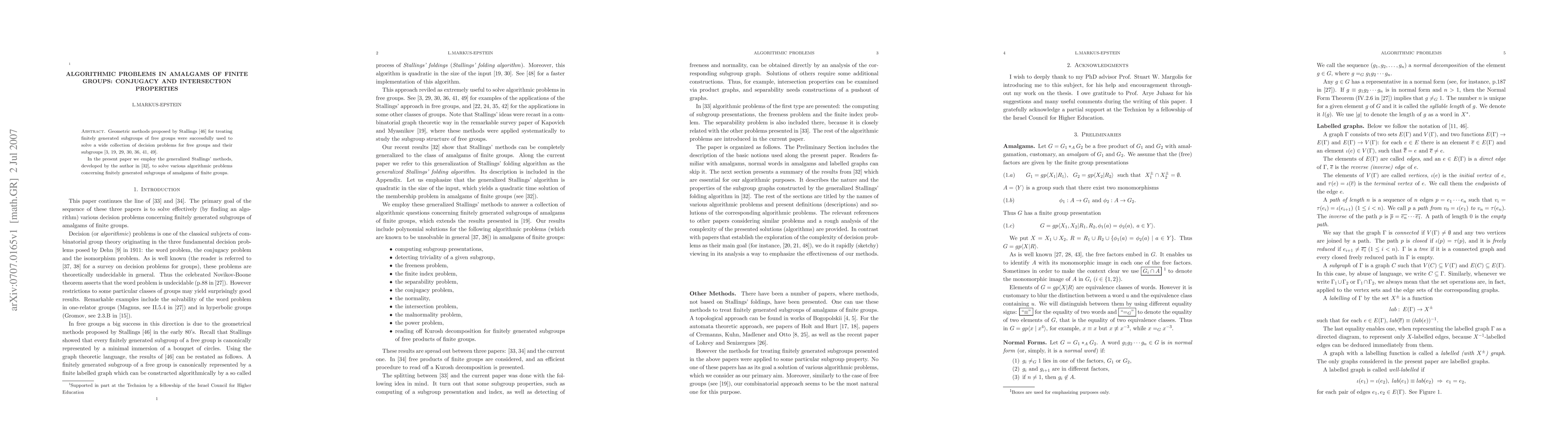 This paper applies generalized Stallings' geometric methods to tackle algorithmic problems related to conjugacy and intersection properties in finitely generated subgroups of amalgams of finite groups. The approach extends successful techniques previously used for free groups and their subgroups.