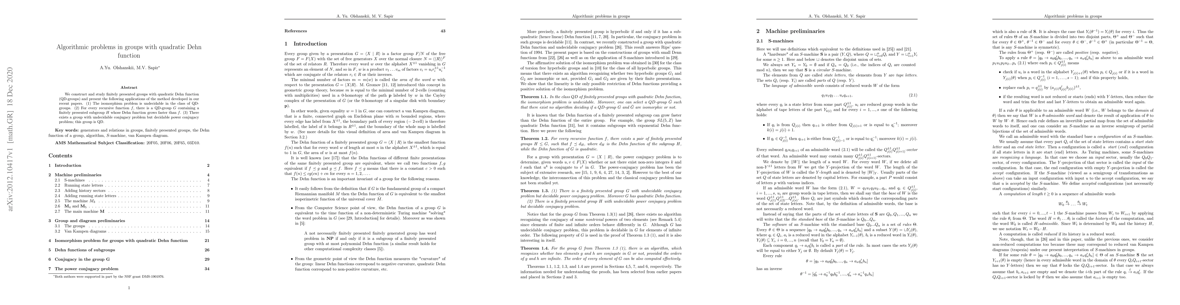 This paper constructs finitely presented groups with quadratic Dehn function (QD-groups) and demonstrates that the isomorphism problem for these groups is undecidable. It also shows that for any recursive function, there exists a QD-group containing a subgroup with a Dehn function growing faster than the given function. Additionally, the paper identifies a QD-group with an undecidable conjugacy problem but a decidable power conjugacy problem.