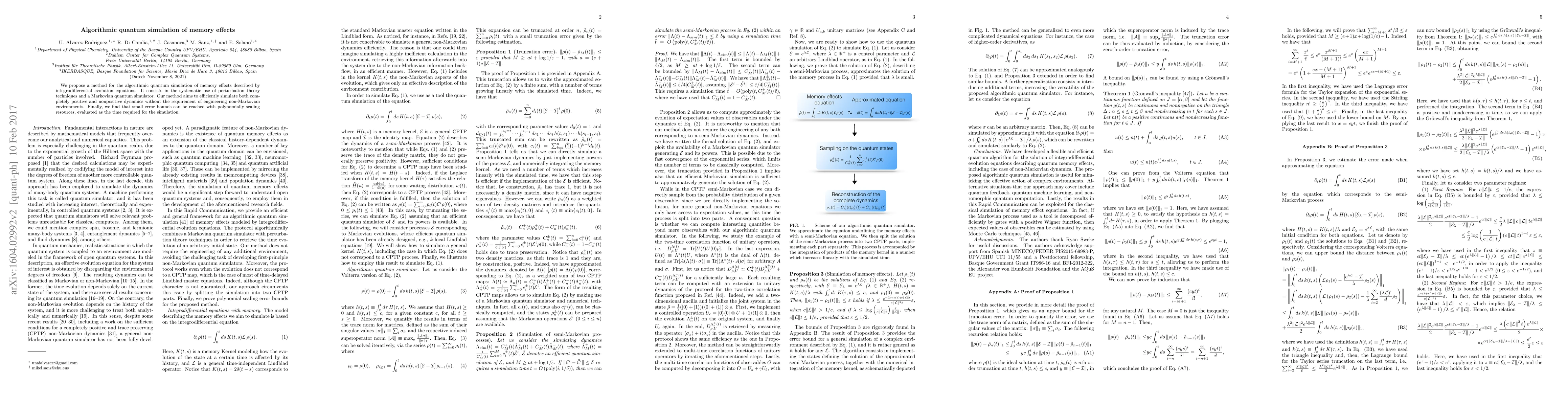 We propose a method for the algorithmic quantum simulation of memory effects described by integrodifferential evolution equations. It consists in the systematic use of perturbation theory techniques and a Markovian quantum simulator. Our method aims to efficiently simulate both completely positive and nonpositive dynamics without the requirement of engineering non-Markovian environments. Finally, we find that small error bounds can be reached with polynomially scaling resources, evaluated as the time required for the simulation.